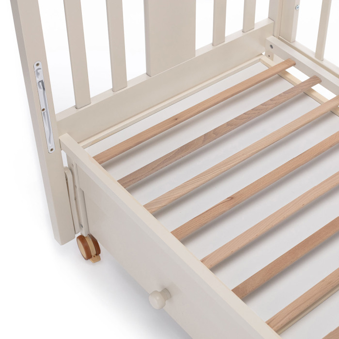 - Боковой бортик может опускаться или сниматься полностью.