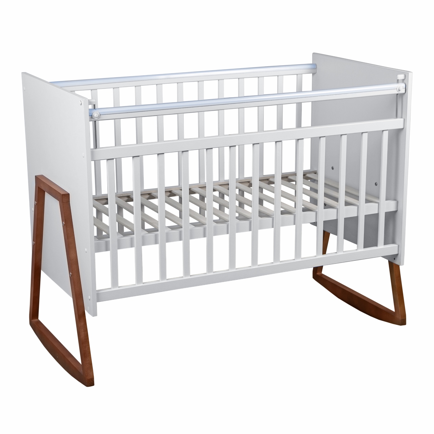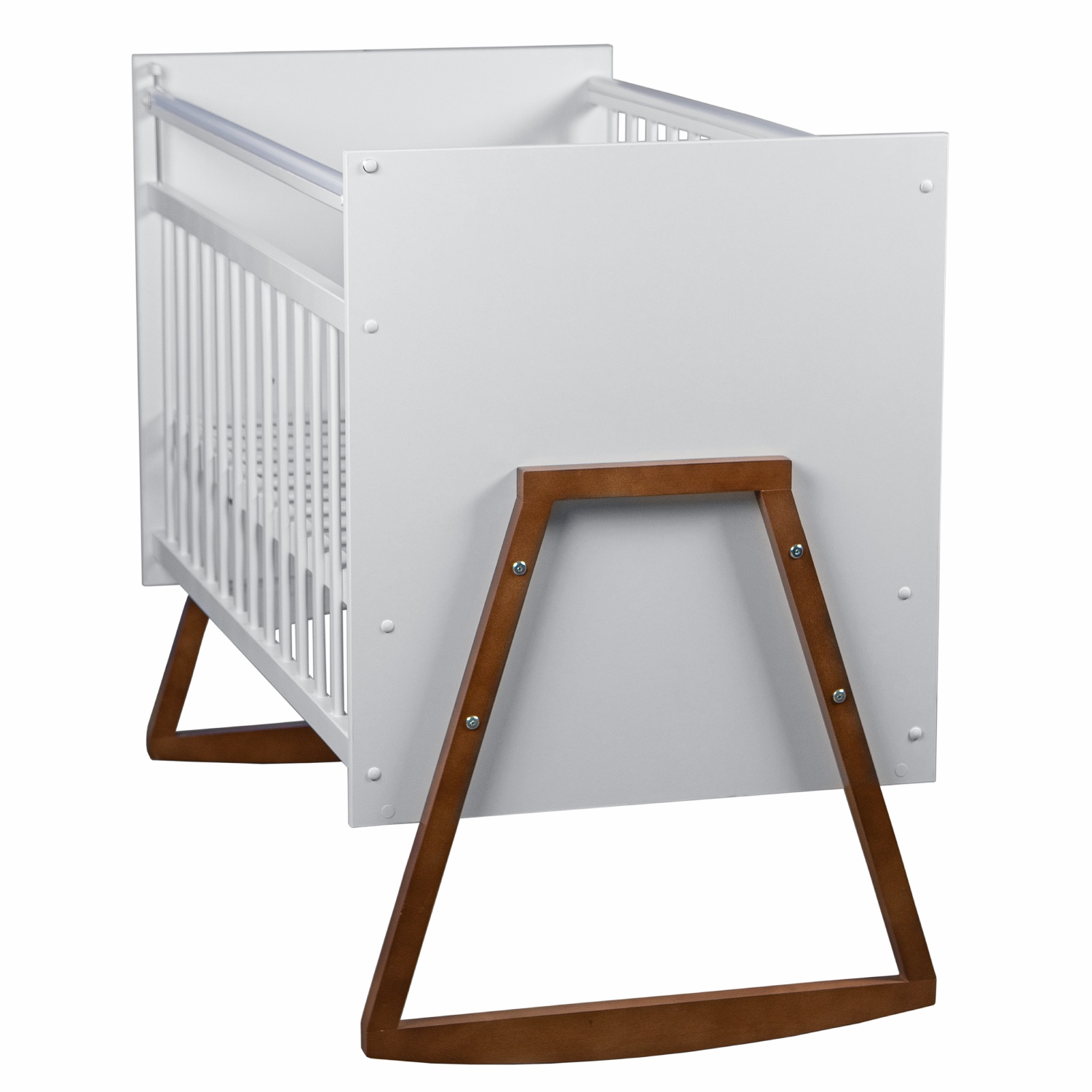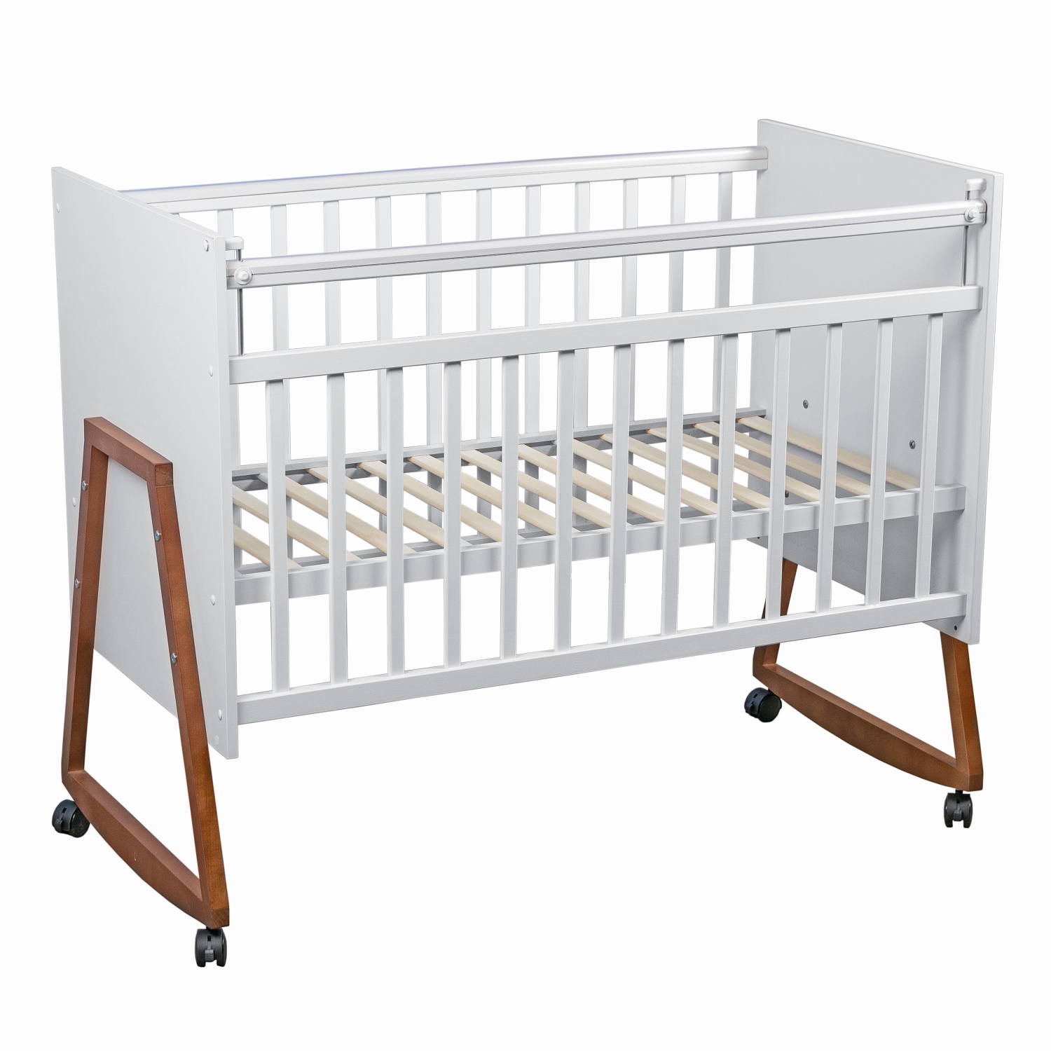 Кроватка оснащена полозьями для качания. Плавно покачивая ребенка из стороны в сторону вы сможете успокоить малыша и настроить его на сон. Так же кроватку можно оснастить колесами для легкого перемещения кроватки по комнате.
