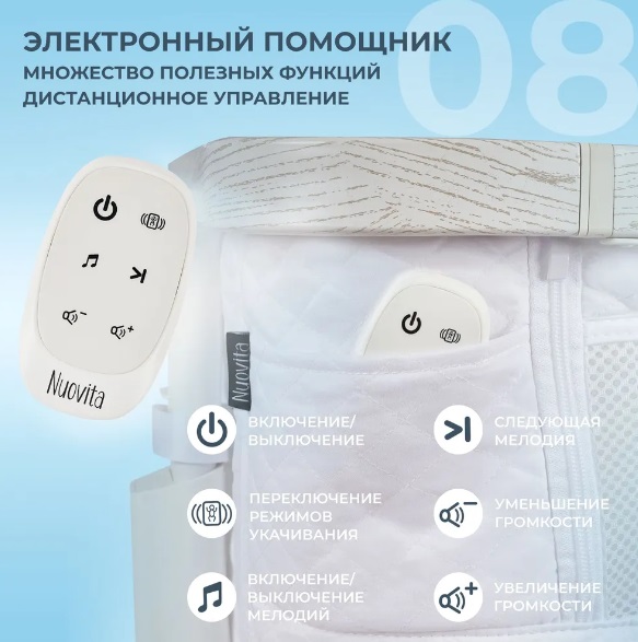 Детская кроватка Nuovita Accanto Quadro (Нуовита акканто квадро) - это инновационное решение для современных родителей, обеспечивающее максимальный комфорт и безопасность для вашего малыша. Бесшумный механизм «Serene Embrace» воспроизводит нежные покачивания из стороны в сторону, словно любящие руки матери, создавая чувство безопасности и комфорта, столь необходимое малышу для спокойного сна. Динамики с низкими частотами и белым шумом воссоздают для ребёнка звуки, которые он слышал в утробе матери, что способствует его расслаблению и быстрому засыпанию.