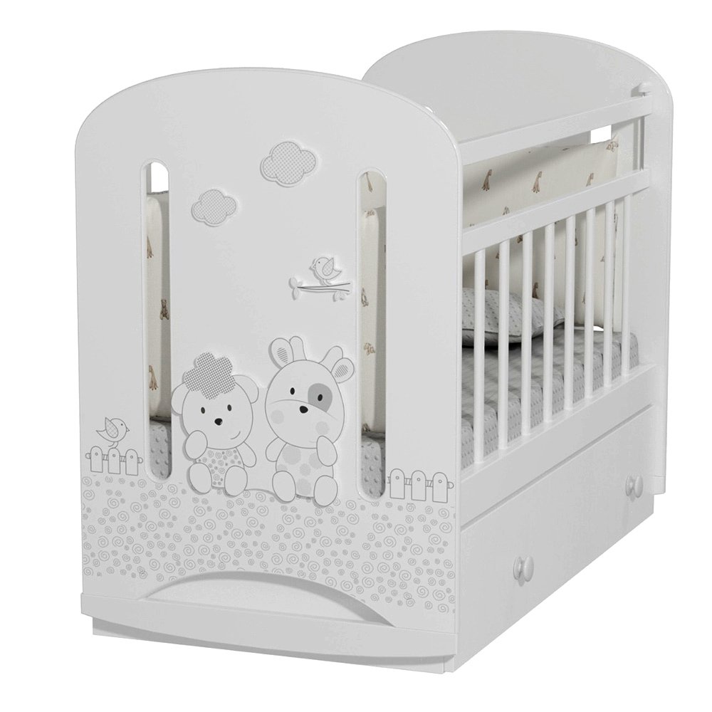 Детская кроватка с маятником и ящиком Альма Няня Fattoria Nuvola - изысканная кроватка с итальянским дизайном для самых сладких снов для ребенка от 0 до 3-4 лет. Кровать выполнена из массива березы, не имеет острых углов и обладает большим функционалом, который поможет родителям в уходе за малышом. Вас ждем стильный дизайн, элегантные прорези для контроля за ребенком и очаровательная аппликация. Сама кроватка оснащена регулируемым спальным ложем, съемной передней стенкой, чтобы использовать модель как диванчик, маятником и вместительным ящиком.