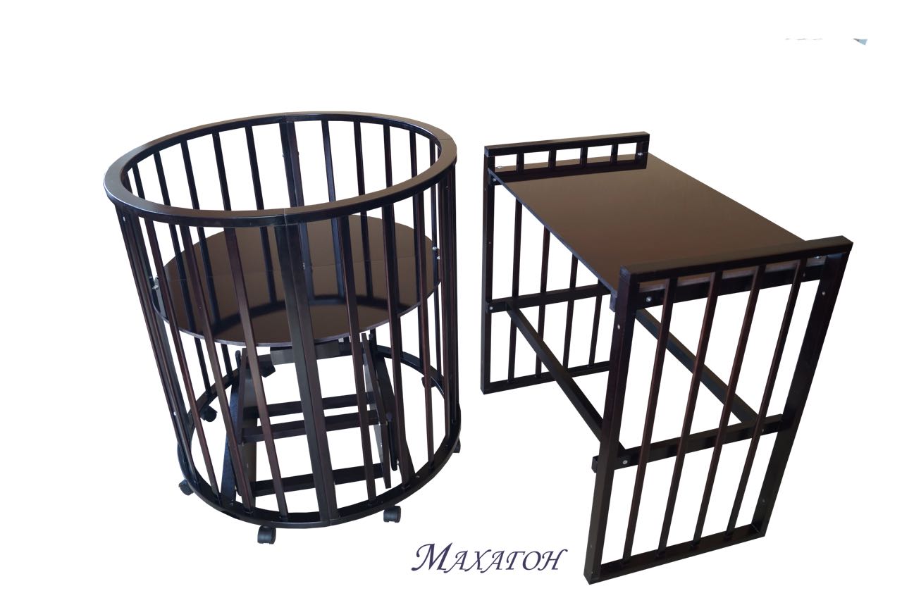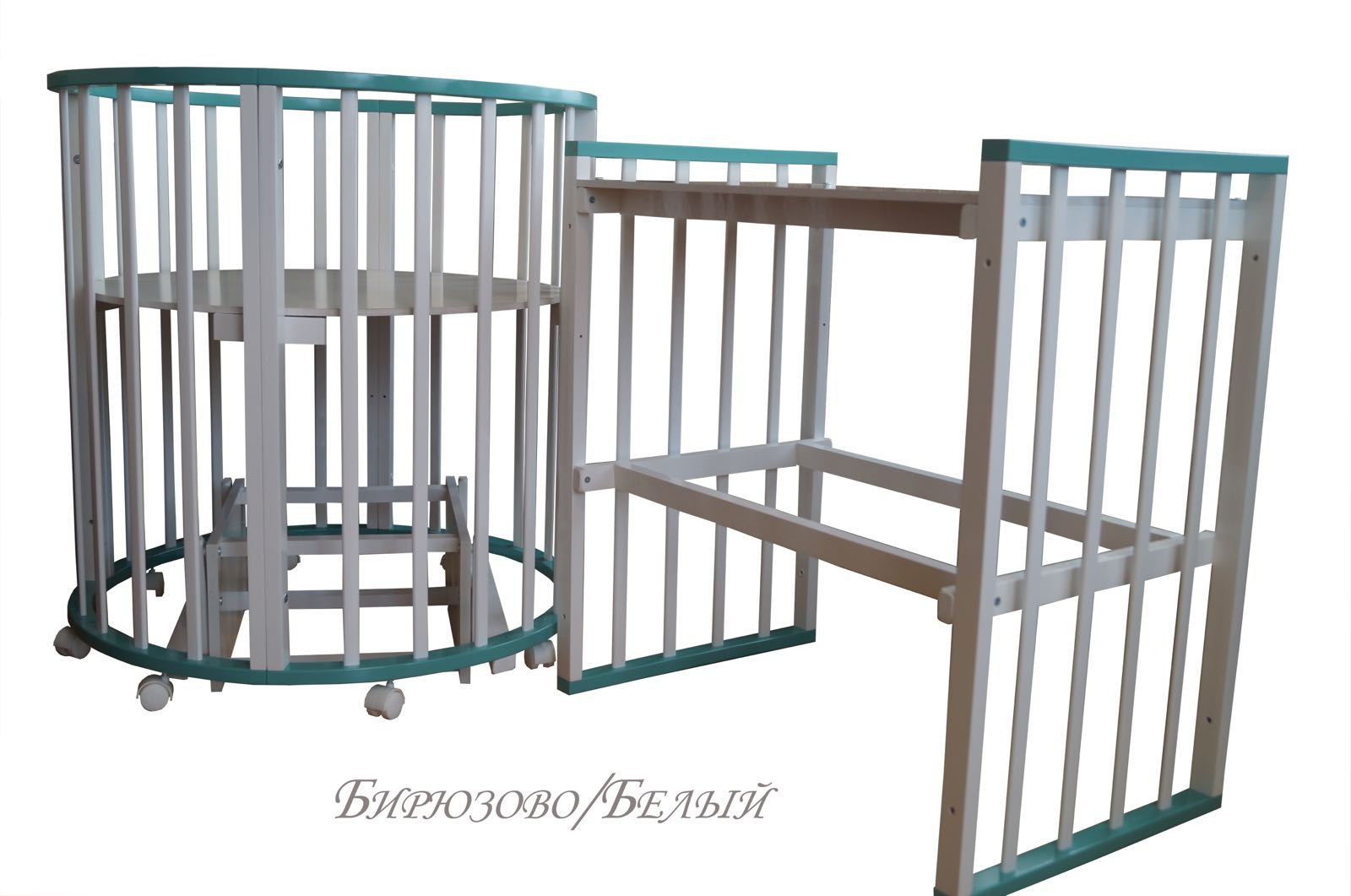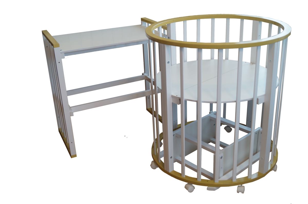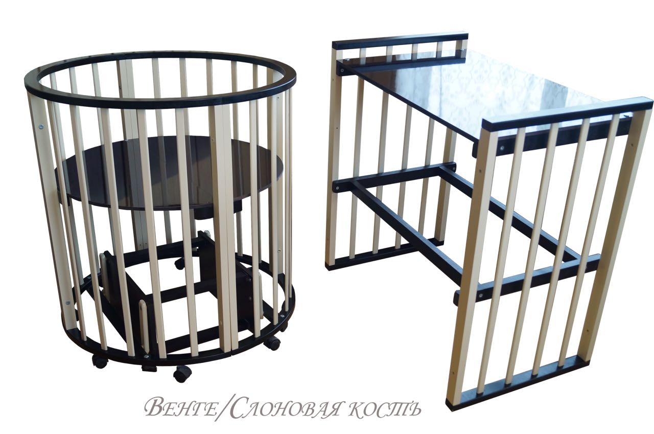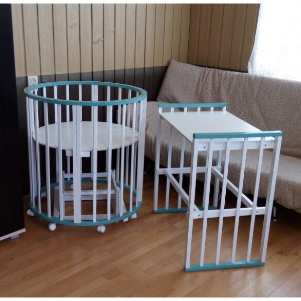 Детская кроватка «Лаура 6 в 1» легко трансформируется в колыбельку для новорожденных, пеленальный столик, овальную кроватку, манеж для игры и сна, стол + два стульчика, диван, приставная кроватка.