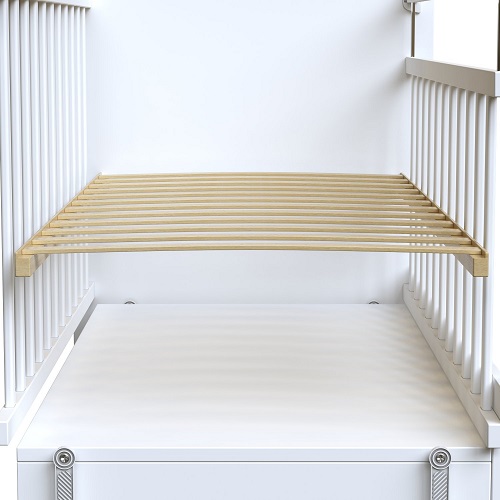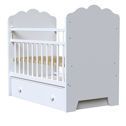 Дно устанавливается на двух уровнях. Расстояние между рейками предусмотрено нормами безопасности. В производстве используется сертифицированный, нетоксичный лак на водной основе. Маятник поперечного качания работает бесшумно и очень помогает родителям в первые месяцы после рождения малыша.