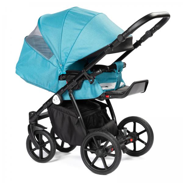 Большое внимание уделено мягкости и плавности хода модели. Современные гелевые колеса оснащены амортизацией, а так же системой Анти-шок, которая поглощает вибрацию при столкновении с неровностями на дороге. Коляска компактно складывается и удобна для транспортировки.