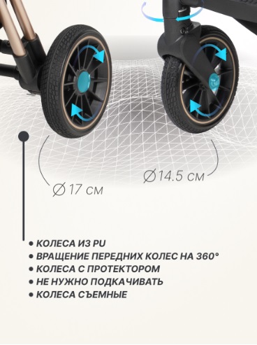 - Материал колёс: PU, съемные, передние поворотные с фиксацией.