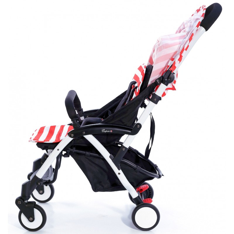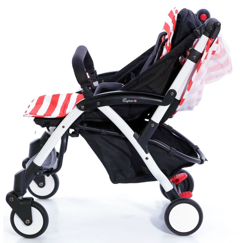 Коляска Esspero Summer Lux (Эсперо Саммер Люкс) - это очень красивая, яркая, летняя коляска, которая очень легко и быстро складывается и весит всего 5,7 кг. Несмотря на свой легкий вес, коляска очень надежная и прочная. Для малыша предусмотрено большое и удобное сидение, с пятиточечными ремнями безопасности, съемные бампером в цвет коляски. В коляске предусмотрен наклон спинки для отдыха малыша, за счет ремней. Большой капюшон закроет малыша от солнца, ветра и дождя. Шасси коляски четырехколесное, передние колеса поворотные, ножная педаль тормоза, глубокая грузовая корзина на жестком каркасе, надежная и прочная подножка для поддержки ножек подрастающего малыша. Механизм складывания происходит путем откидывания капюшона на спинку с последующим сложением коляски "книжкой", за счет чего коляска в полном сложенном состоянии приобретает минимальные размеры, всего 500*400 мм, что является абсолютным достоинством при транспортировках, в путешествиях и при хранении! В комплект также входит плечевой ремень для ручной транспортировки коляски.