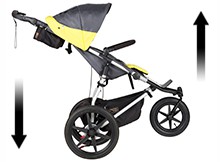 - Для комфорта мам и пап разного роста и скорости ходьбы ручка Terrain имеет 12 положений и изменяется по высоте от 90 до 124 см.