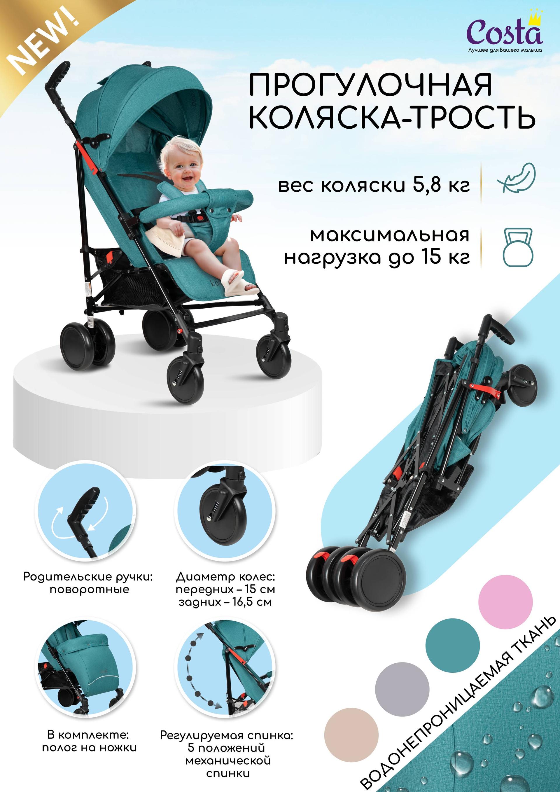 Детская прогулочная коляска-трость Costa KODA (коста кода) - детская коляска которая сочетает в себе легкость, маневренность и функциональность, делая каждую прогулку комфортной для ребенка и его родителей.