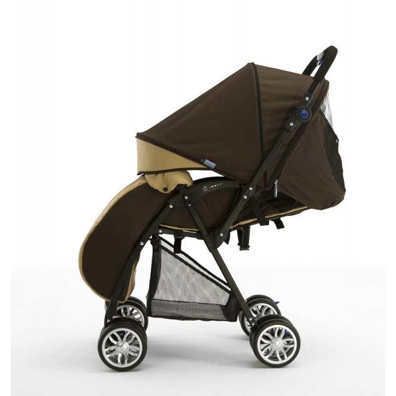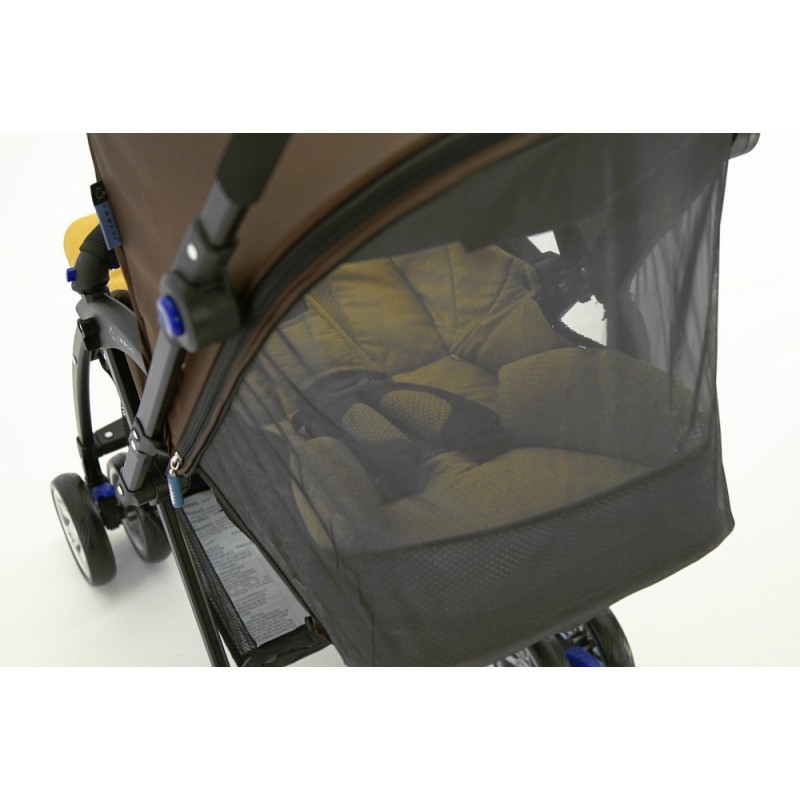Капор удобный и бесшумный, опускается почти до бампера, укрывает ребенка от природных явлений. Спинка полностью опускается для отдыха на прогулке. Подножка также регулируется, чтобы делать длиннее и удобнее спальное место ребенка. Есть регулируемые страховочные ремни и отстегиваемый поручень.
