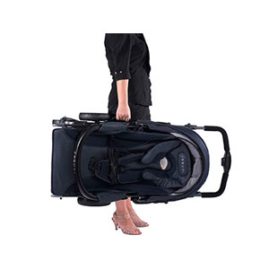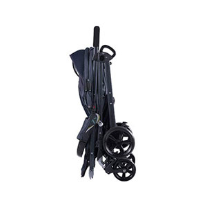 Алюминиевая рама прочная и очень легкая. Чтобы сложить коляску, необходимо всего лишь потянуть за ручку с одной из сторон, достаточно усилий одной руки и коляска компактно сложена. Страховочный ремень прочно удерживают коляску в сложенном состоянии, а боковая ручка очень удобна для переноски.
