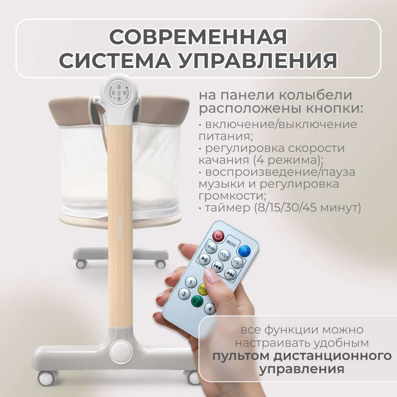 Детские электрокачели BubaGo Virelle (бубагоу вирелли) - забота, комфорт и технологии с первых дней жизни. BubaGO Virelle — это современная многофункциональная электроколыбель, которая объединяет три устройства в одном: