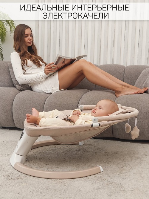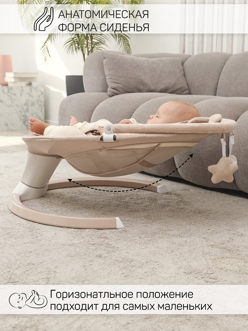 Электрокачели для новорожденных оснащены очаровательными мягкими игрушками, которые закреплены на капюшоне в непосредственной близости от ребенка. Это стимулирует развитие мелкой моторики рук и обеспечивает дополнительное развлечение для малыша.