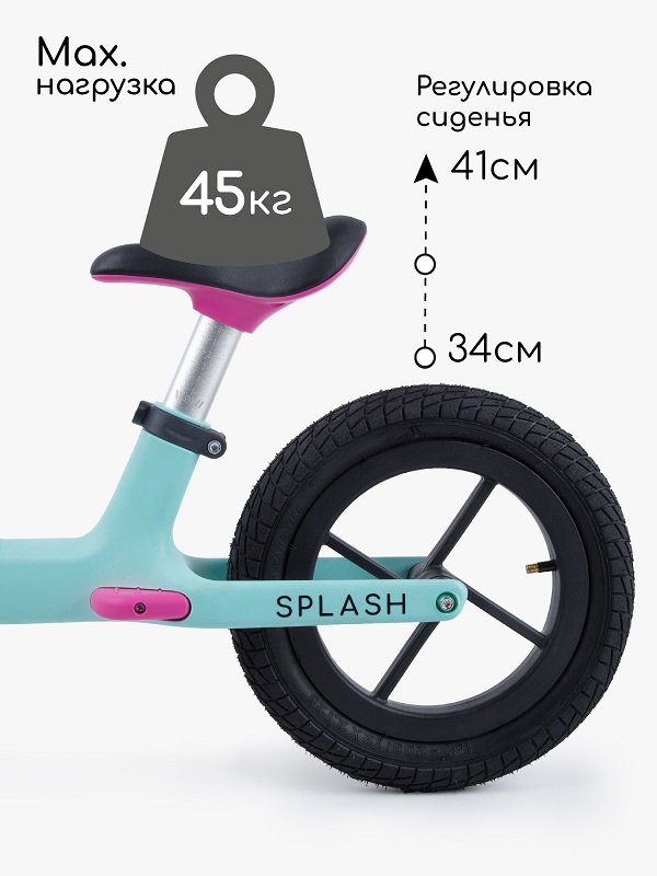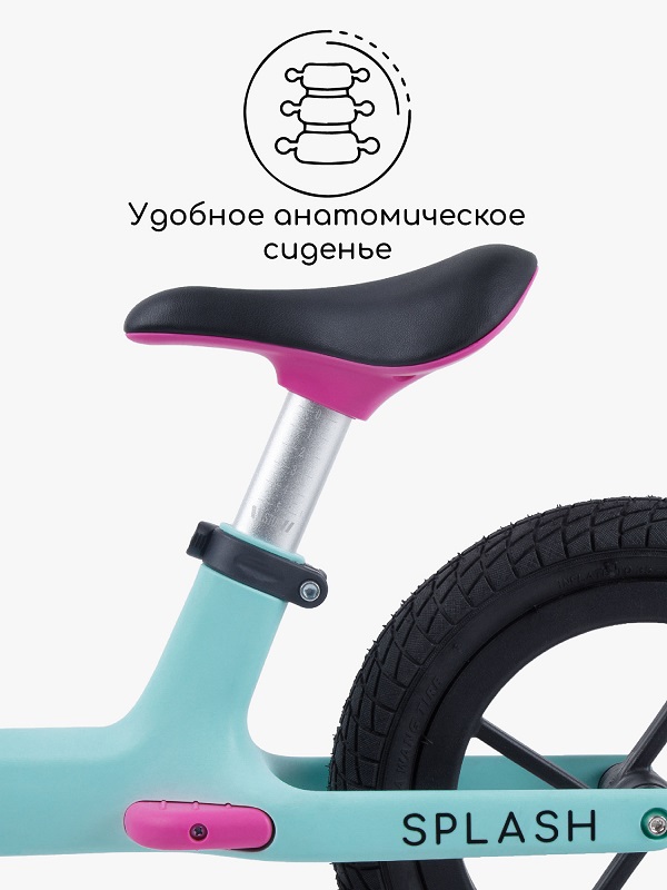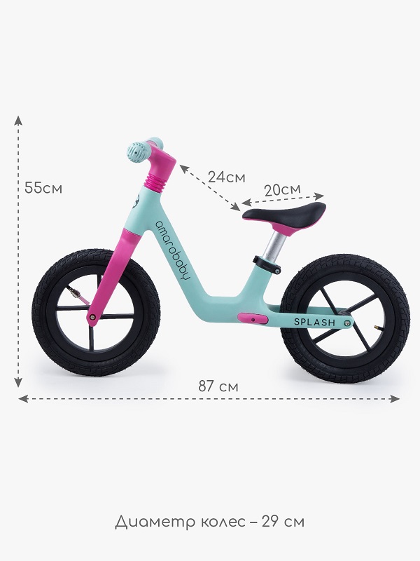 Детский беговел Amarobaby Splash (Амаробеби сплешь) - качественный велобег с надувными колесами для ребенка от 2-3 лет. Прекрасное сцепление с дорогой, мягкий ход даже вне асфальта. Легкое управление за счет легко поворотного руля с противоскользящими грипсами. Сидение регулируется по высоте, позволяя подстраивать беговел под рост ребенка.