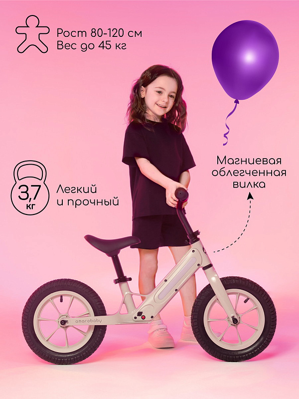 - Легкий вес. Благодаря магниевому сплаву в составе важных частей, беговел для детей имеет очень легкий вес - всего 3.7 кг.