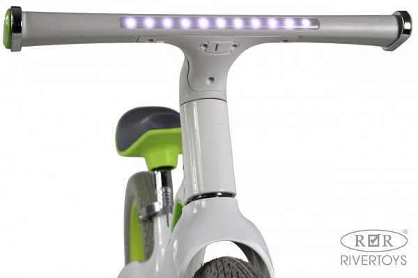 Руль и сидение регулируются под рост ребенка. Подсветка сделает беговел более ярким и эффектным, а так же повысит безопасность ребенка на дороге.