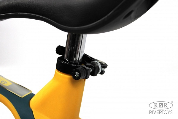 Сидение из эко кожи регулируется по высоте, позволяя настроить велобег под рост ребенка. Руль не регулируется по высоте. Имеет удобные прорезиненные накладки на руль, удобные для детской руки.