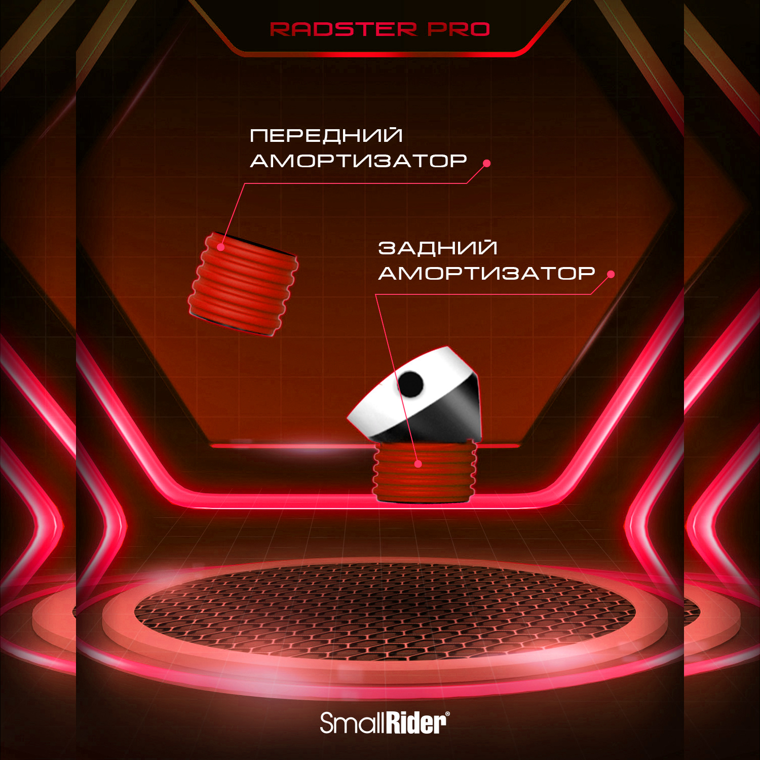 Детский беговел Small Rider Roadster Pro Eva (смолл райдер роадстер про ева) - флагманский беговел линейки Small Rider, в новой обновленной версии. Это уже 5 поколение уникального беговела, который сочетает в себе безопасность, продуманный функционал и стильный внешний вид. В отличии от большинства похожих моделей данная модель имеет 2 амортизатора, которые сделают поезду очень мягкой. Задний пружинный амортизатор нивелирует неприятные ощущения от попадания в ямки, стыки, при спрыгивании с бордюра и т.п., снижает нагрузку и напряжение. Передний пружинный амортизатор также поглощает вибрации и отдачу в руки ребенка, позволяет ехать комфортно даже по брусчатке.