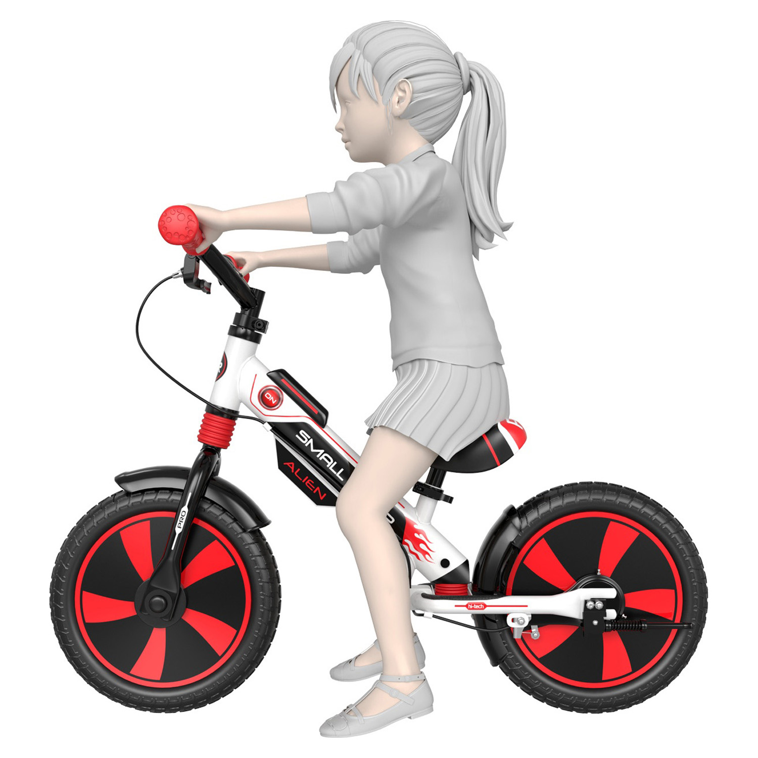 Так же беговел имеет удобную регулировку высоты сидения, плавные повороты руля, складную подножку и специальные наклейки на колеса, которые защитят колеса от грязи и сделают беговел более ярким.
