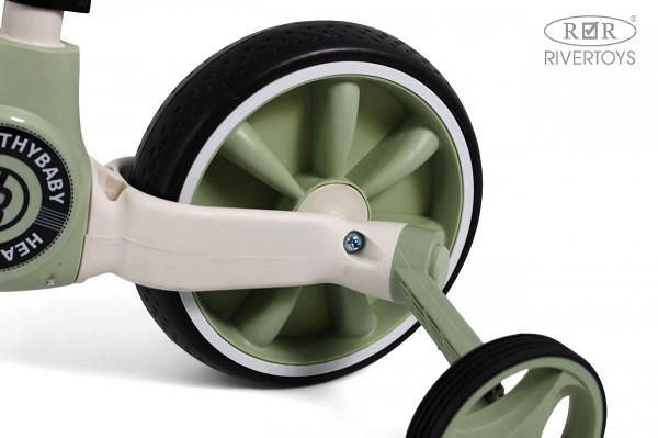 Детский беговел-велосипед Rivertoys HB-318 (Ривертойс) - обучающий велосипед - беговел для ребенка от 1 годика. Его преимущество в дополнительных колесиках, которые придают транспорту устойчивость, и съемных педалях. Ребенок сможет спокойно пробовать кататься на беговеле с доп колесами и не боятся упасть, может сразу пробовать кататься на беговеле, а уже в режиме велосипеда, можно установить доп колеса и педали. Главное, что у ребенка будет выбор, и он обязательно найдет свой, оптимальный, вариант использования транспорта.