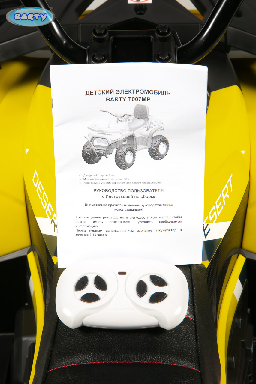 Купить детский электрический квадроцикл Barty T007MP (Барти Т007МР) в нашем магазине очень просто — Вам достаточно оформить заказ онлайн на сайте или по телефону +8(925)266-83-06. Мы доставим товар в самое короткое время по Москве и Подмосковью (бесплатно до 10 км за МКАД). Так же отправляем в любой город России, в Армению, в Киргизию, в Крым, в республику Беларусь с помощью транспортной компании.