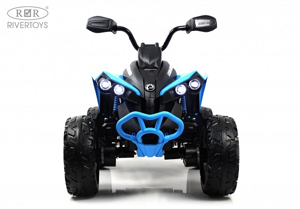 Детский электроквадроцикл Rivertoys BRP Can-Am Renegade (Y333YY) - Лицензионная модель с дистанционным управлением. Мощный внедорожник на больших каучуковых колесах с амортизаторами. Прекрасная проходимость по любым дорогам. Удобное кожаное сидение и несложное управление. Для большей реалистичности и удовольствия во время катания предусмотрены световые и звуковые эффекты, подключение любимой музыки, песен, сказок.