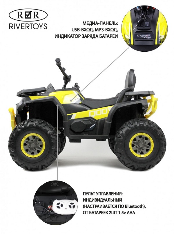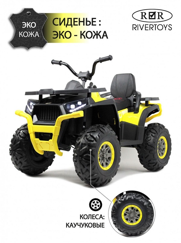 Детский электроквадроцикл Rivertoys H999HH (ривертойс) - стильный, мощный внедорожник с пультом дистанционного управления.