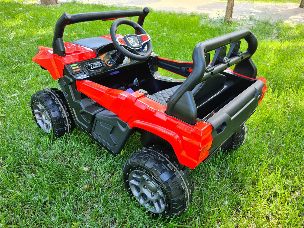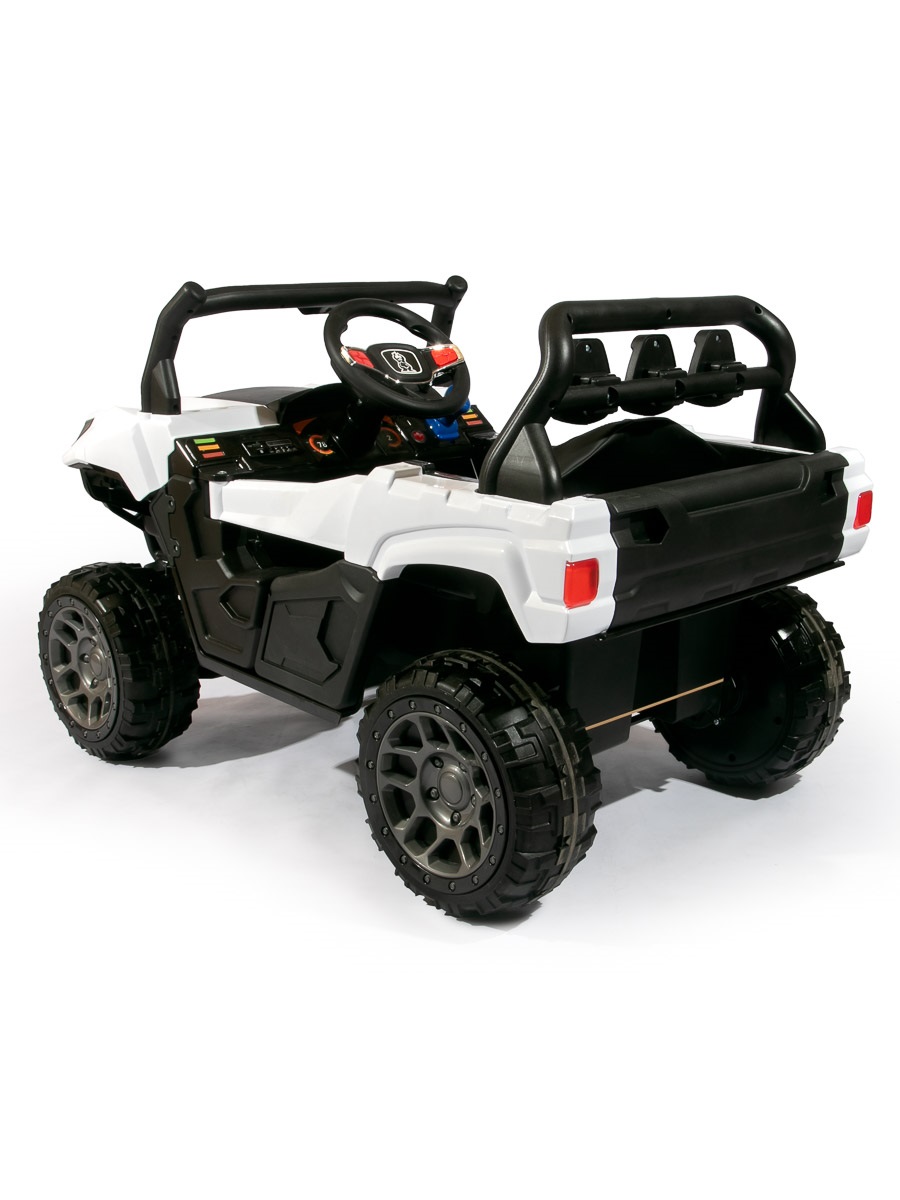 Детский электромобиль Barty BUGGY F777 (Барти Багги Ф777) - крутой внедорожник для ребенка от 3 лет с полным приводом и большими ева колесами с подшипниками. Такой транспорт гарантирует ребенку новые, яркие впечатления от прогулки. Комфортное сидение покрыто эко кожей. Плавный старт транспорта обеспечит безопасность ребенка и удобство в управлении. Если ребенок еще мал и пока не готов к самостоятельной поездке, родители могут управлять транспортом с пульта. Для более реалистичной поездки с "комфортом" предусмотрено открывание дверей, USB-вход для музыки, свет фар.