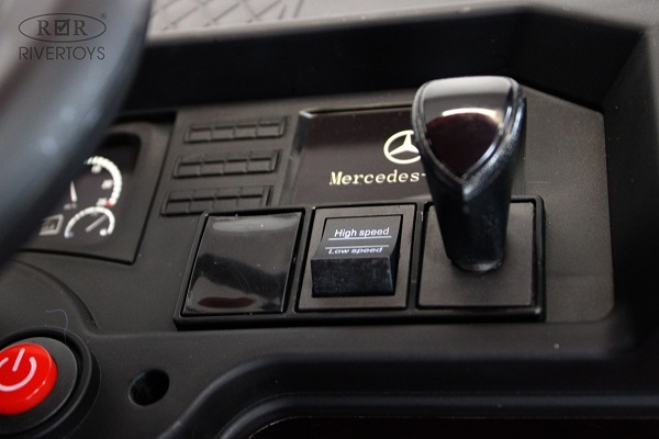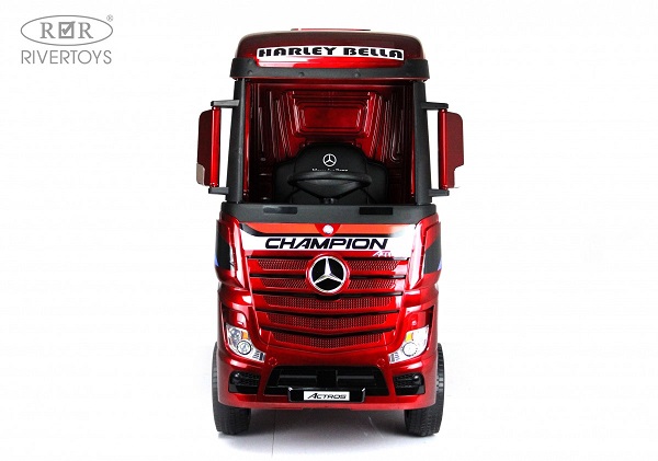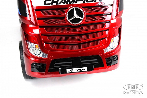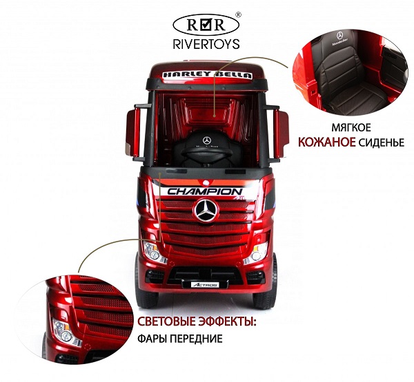 Детский электромобиль Rivertoys Mercedes-Benz Actros HL358 (Мерседес Бенз Актрос) - детский тягач для ребенка от 1 до 5 лет. Какой ребенок не мечтает управлять настоящим грузовиком -тягачом? Это настоящая мечта всех мальчишек и не только. Теперь у вас есть возможность подарить ребенку машину- мечты. Одноместный, большой, яркий, с сидением из эко кожи. Машина легко управляется и имеет 2 скорости вперед и одну назад. Мотор запускается с кнопки и имеет плавный старт. Если пока ребенок не готов к самостоятельному управлению таким транспортом, есть пульт управления для родителей. Машинка мощная и имеет полный привод. Мягкие каучуковые колеса и амортизаторы. Максимальная скорость 5 км в час, а заряда аккумулятора хватит примерно на 2 часа езды.
