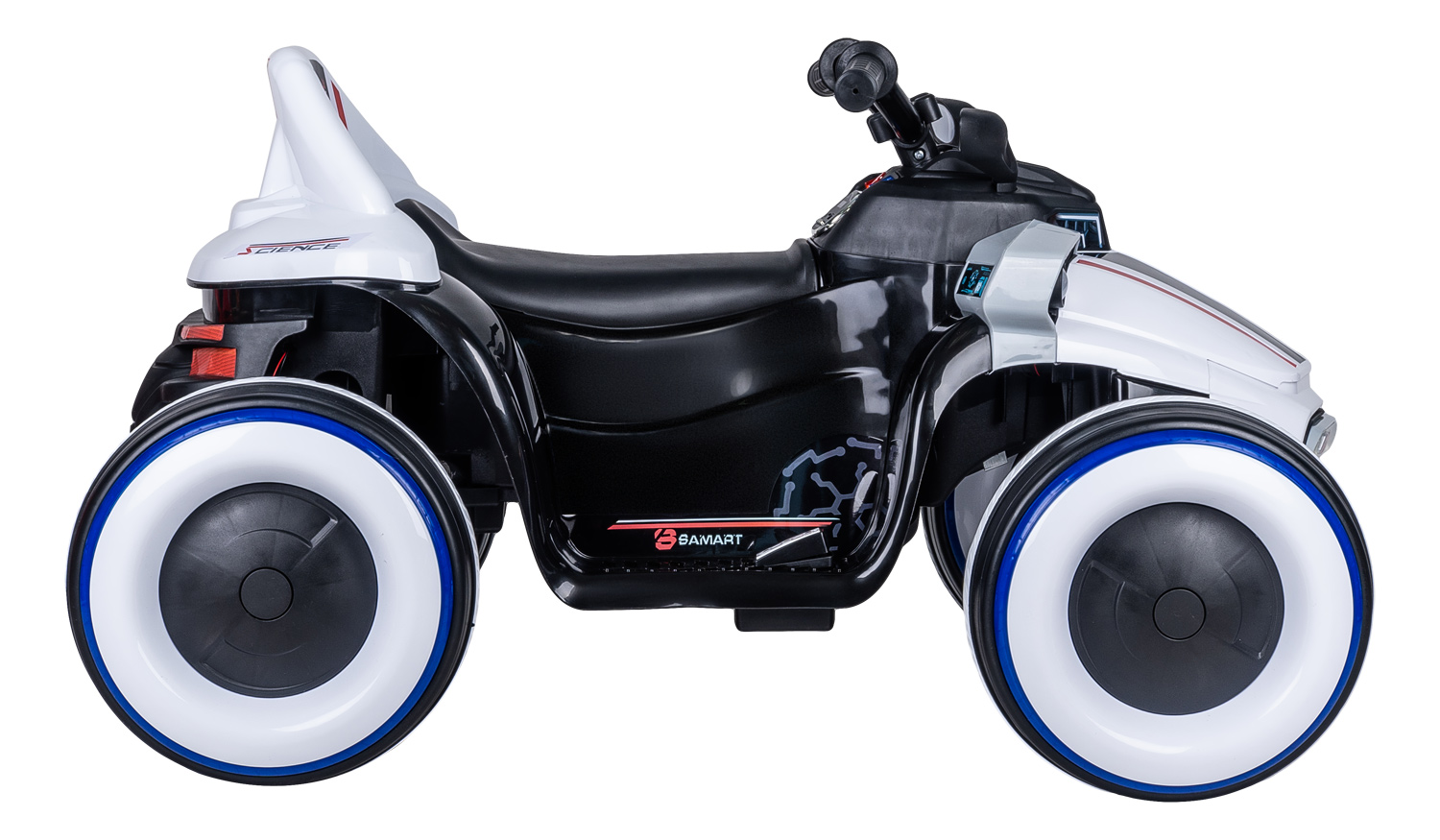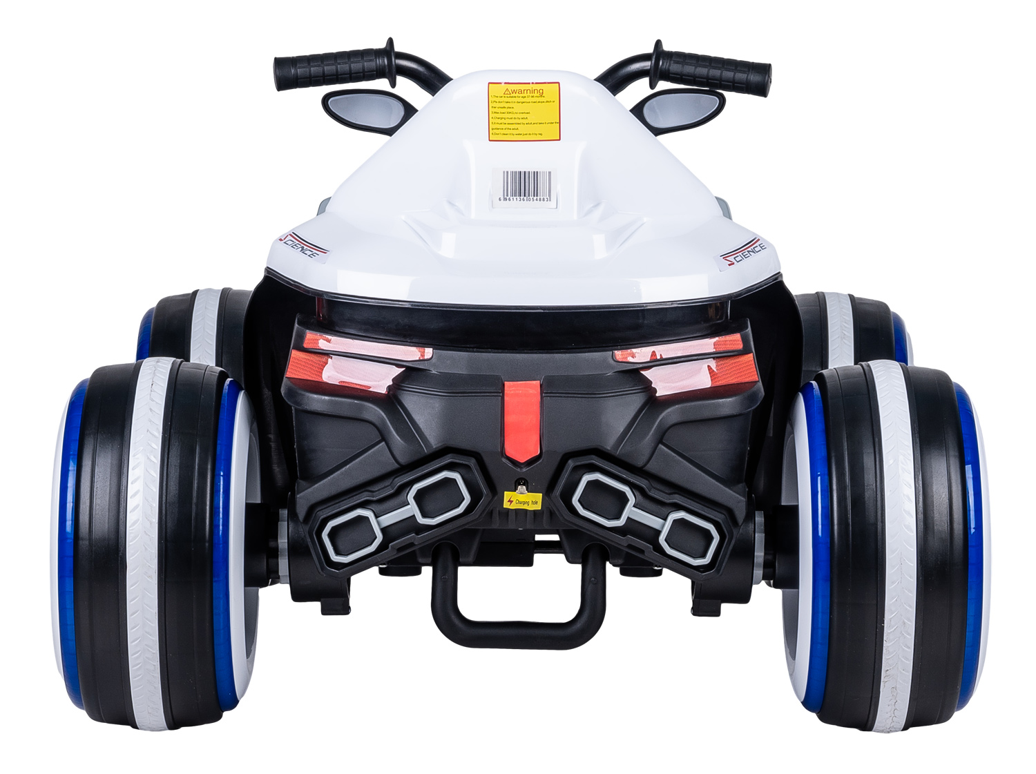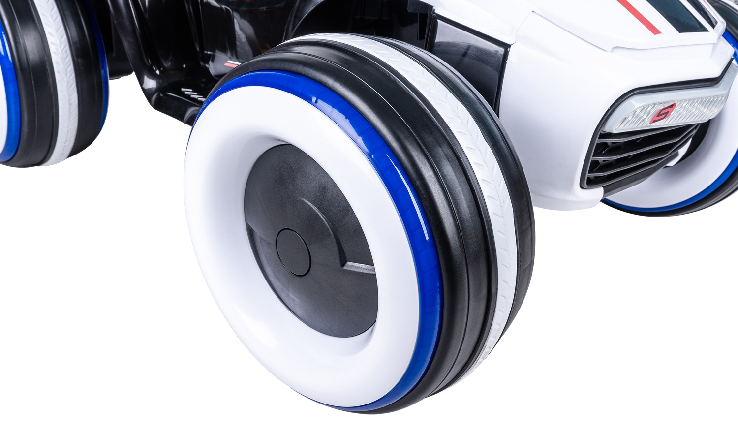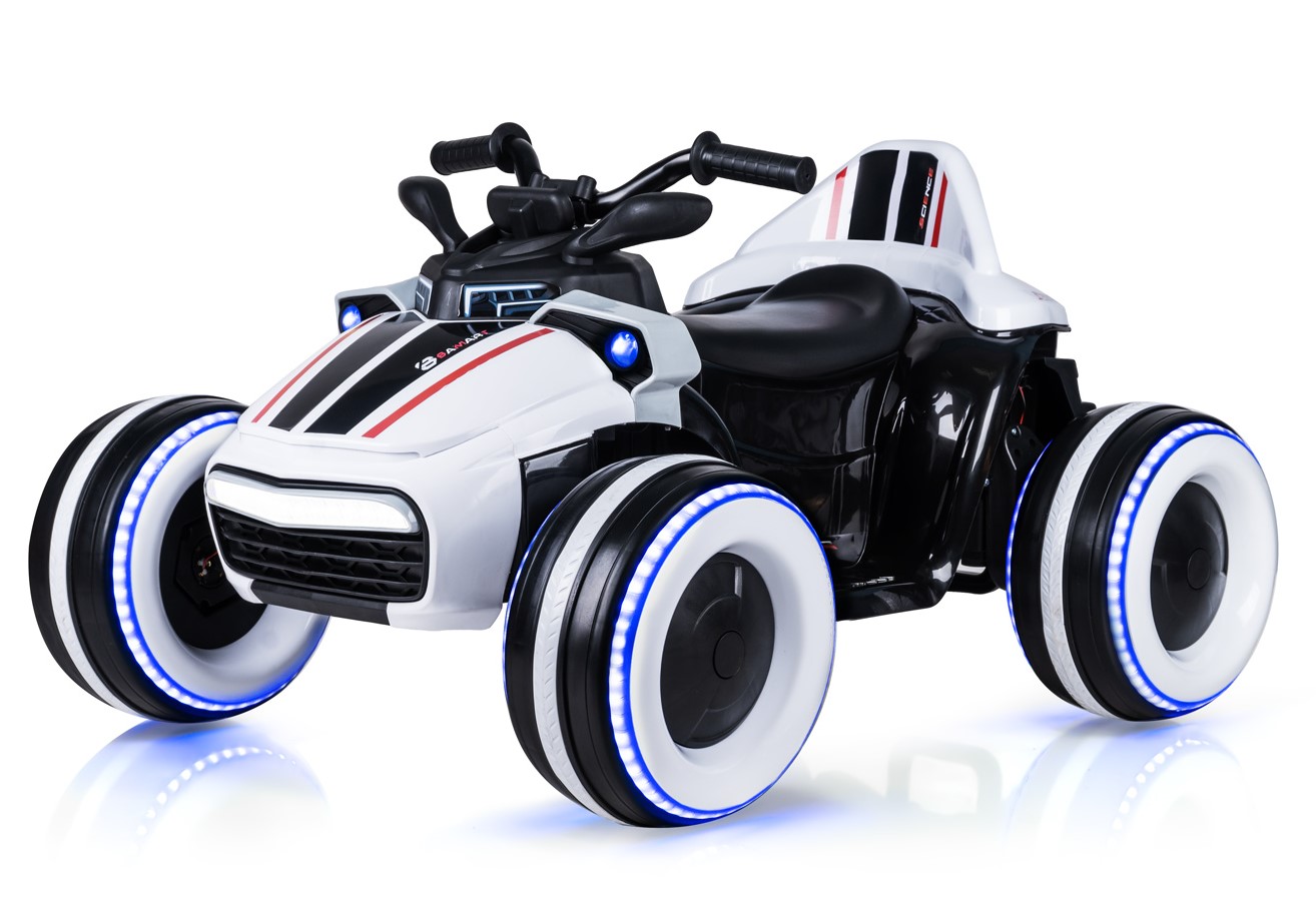 - Световые эффекты: яркий свет фары и подсветка каждого колеса.