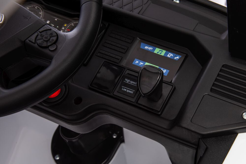 Детский электромобиль-фура Scania HL698 LUX (Лицензия) - это большой, просторный электромобиль Scania 500R с настоящей водительской кабиной. Высота крыши позволяет с комфортом кататься детям ростом до 120 см. По бокам расположены открывающиеся дверцы с фиксирующими замками, чтобы ребёнок быстро садился и покидал салон. Машина легко перемещается при разряженном аккумуляторе, с помощью откидной ручки, расположенной под передним бампером. Таким образом, мамы будут транспортировать игрушку на любые расстояния.