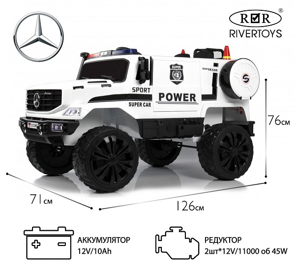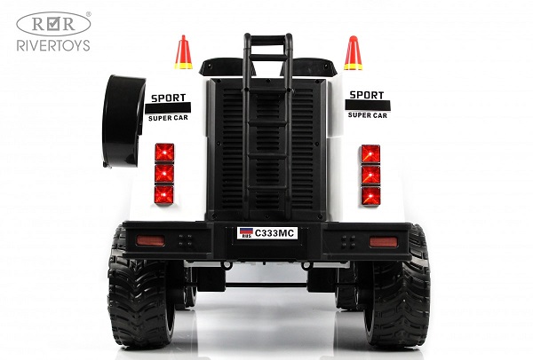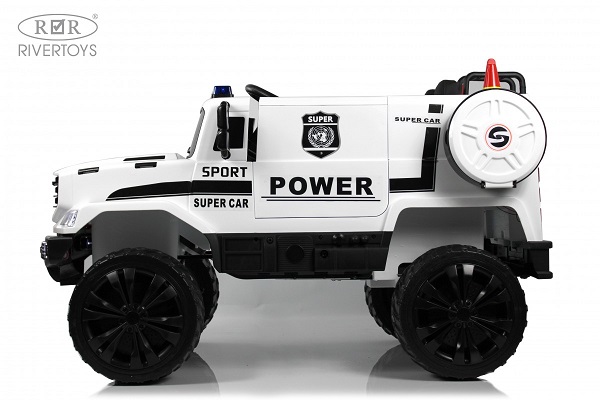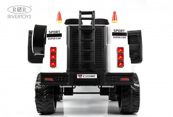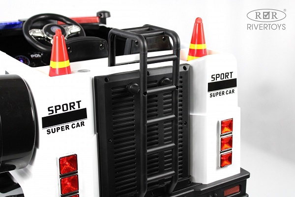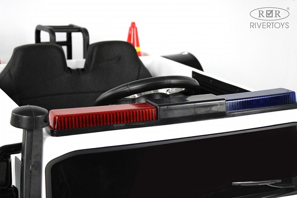 Детский электромобиль Rivertoys C333MC (ривертойс) - настоящая мечта любого мальчика и девочки от 3 лет. Полицейский автомобиль с проблесковым маячком и пультом управления имеет невероятный дизайн, который смотрится очень реалистично и эффектно. Звук сирены с кнопки, заводская музыка и возможность подключения любых сказок и песен с помощью USB-входа и Bluetooh. У машины открываются двери, багажник и запаска (удобно для хранения любимой игрушки). Есть принцип качалки, который включается с кнопки.