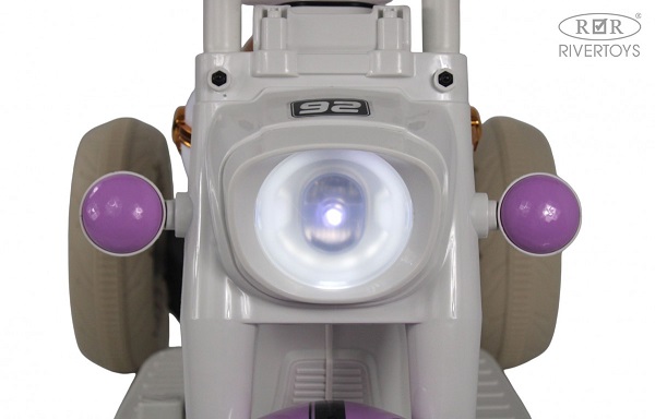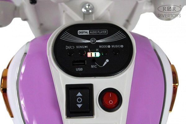 Детский электромобиль Rivertoys G500GG-A (ривертойс) - детский трицикл для ребенка от 3 лет, детализированный под настоящий мотоцикл. Внешний вид электромобиля завораживает, а начинка машинки позволит наслаждаться каждой поездкой. Подсветка корпуса и включение передних фар сделают поездку не только увлекательной, но и безопасной для поездок в темное время суток. Трицикл оснащен заводской музыкой, а так же есть возможность подключения любимой музыки через USB и Bluetooth. Индикатор заряда батарее подскажет, когда необходимо зарядить транспорт и поможет заранее прокладывать маршрут прогулки, в зависимости от заряженности аккумулятора.