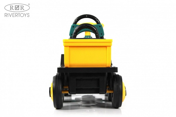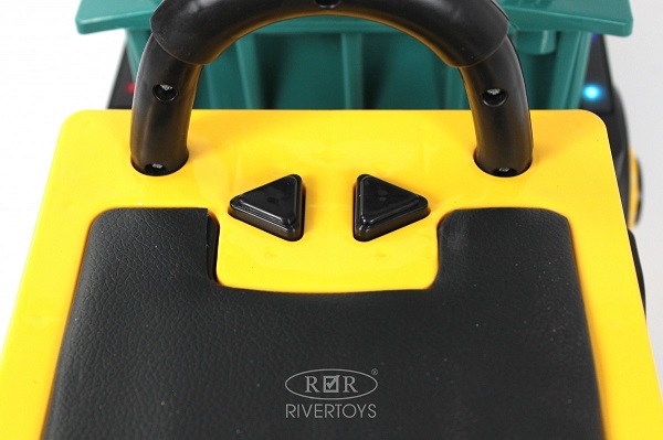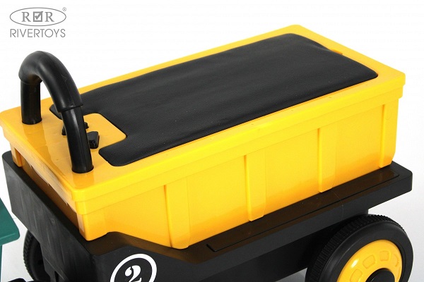 Сидения выполнены из мягкой эко кожи. Водительское сидение имеет небольшую, но удобную спинку. Второе сидение оснащено ручкой, а под сидение большое место для хранения и перевозки игрушек. Второе сидение - прицеп можно отсоединить при необходимости.