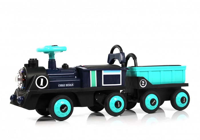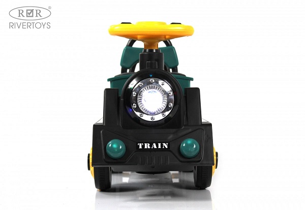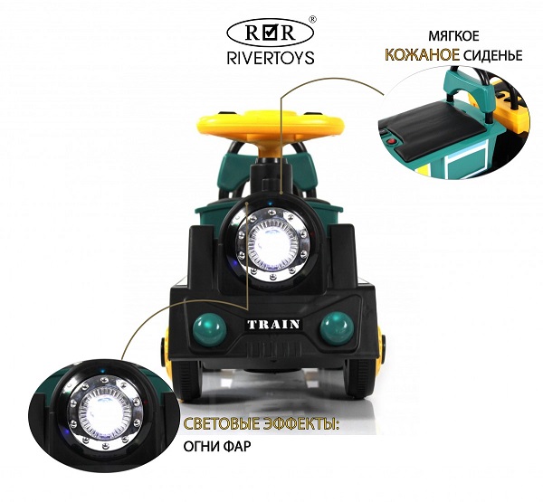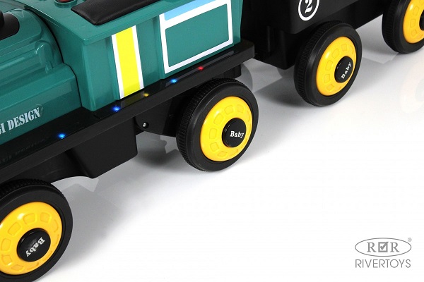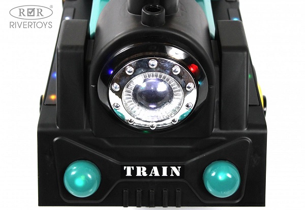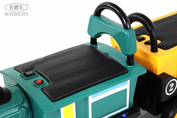 Детский электромобиль Rivertoys K008AM - детский паровоз с прицепом для одного или даже двоих детей с мотором. Прекрасный вариант первого электротранспорта для ребенка. Машинка очень легко запускается, легко управляется, максимально устойчивая. Внешний вид машинки невероятно привлекательный. Машинка выполнена в виде паровоза с большой рабочей фарой, музыкой, USB портом, интересными световыми индикаторами.