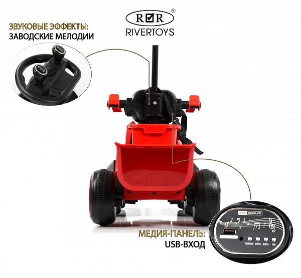 Детский электромобиль Rivertoys K009AM (ривертойс) - уникальный электромобиль для самых маленьких, который включает в себя огромный функционал. Электромашинка относится к спецтехнике и включает в себя легко управляемый ковш и прицеп. Ребенку будет очень удобно управлять как самой машинкой, так и ковшом, которым малыш сможет собирать игрушки, капать в песочнице, собирать шарики в сухом бассейне.