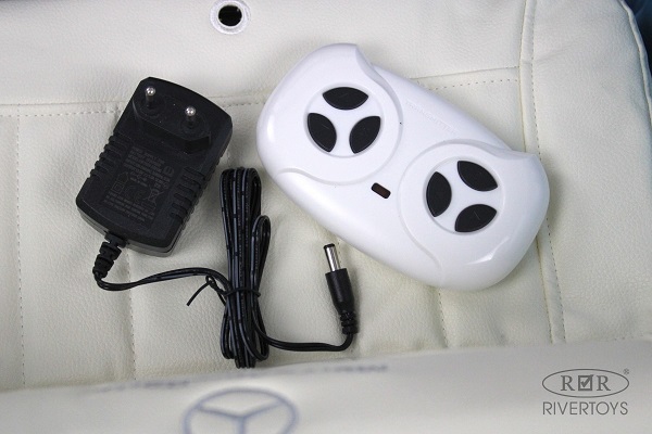 Конечно же в авто просторное светлое сидение с кожаными накладками и лицензионной эмблемой Mercedes-Benz. Качественные резиновые колеса с амортизаторами позволят наслаждаться плавной поездкой.