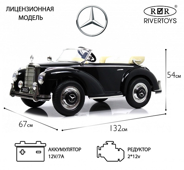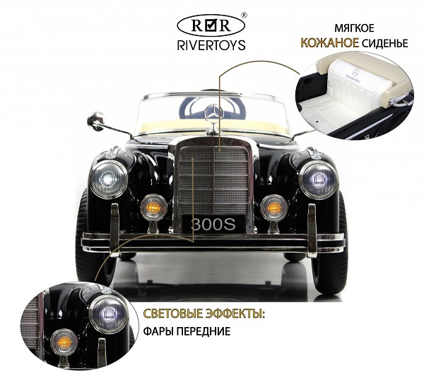 Детский электромобиль Rivertoys Mercedes-Benz 300S (ривертойс) - детский автомобиль в ретро стиле для ребенка от 3 до 7 лет. В этой машине прекрасно все, от внешнего продуманного дизайна до максимально возможной детализации в салоне. Ребенок будет ощущать себя, как в настоящем дорогом авто. Звуковые и световые эффекты добавят реалистичности и позволят окунуться в атмосферу свободы и духа приключений.