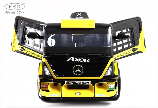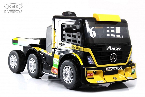 Детский электромобиль Rivertoys Mercedes-Benz Axor с прицепом (H777HH) - детский одноместный электромобиль, выполненный в виде реалистичной фуры с прицепом. Прекрасный вариант для ребенка, которого привлекает спецтранспорт.