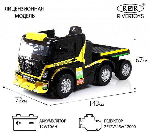 Купить электромобиль Rivertoys Mercedes-Benz Axor с прицепом (H777HH) в нашем магазине очень просто — Вам достаточно оформить заказ онлайн на сайте или по телефону +7(925)266-83-06. Мы доставим товар в самое короткое время по Москве и Подмосковью (бесплатно до 10 км за МКАД). Так же отправляем в любой город России, в Армению, в Киргизию, в Крым, в республику Беларусь с помощью транспортной компании.