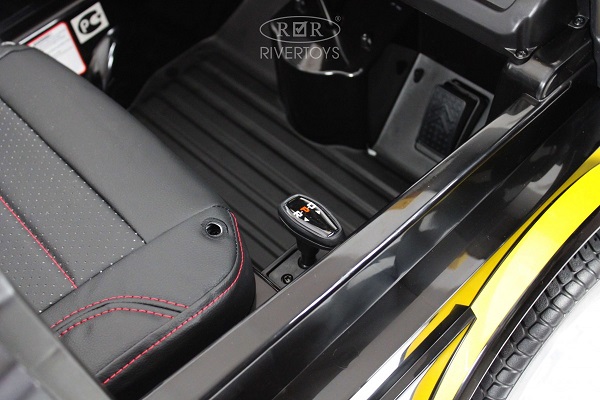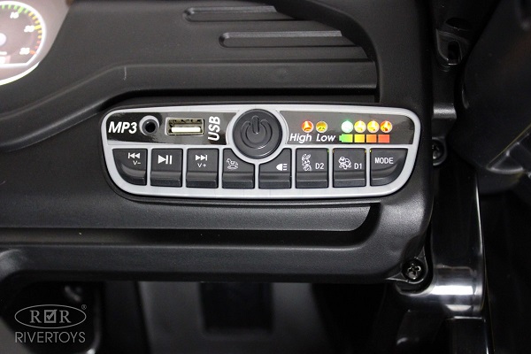 Машинка отличается стильным внешним видом, реалистичной кабиной водителя, открывающимися дверями. В кабине размещено комфортное кожаное сидение с ремнями безопасности. На руле - клаксон. На удобной панели рядом с рулем предусмотрены Bluetooh, USB-вход, индикатор заряда батареи. Машина легко управляется, интуитивно понятна.