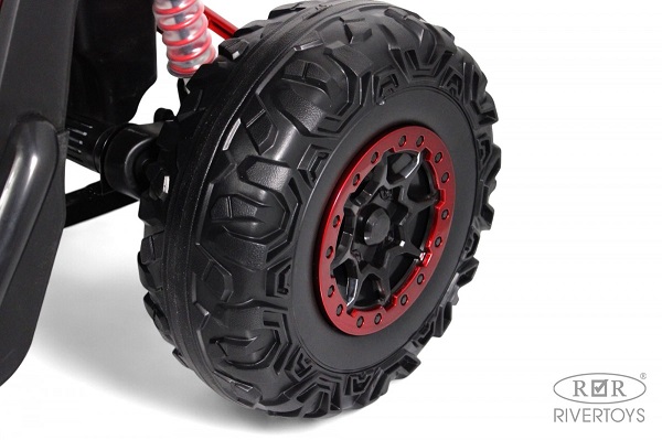 Детский электромобиль Rivertoys P777BP (ривертойс) - мощный багги с возможностью включения полного привода. Качественные каучуковые колеса с пружинной амортизацией прекрасно справятся с любыми препятствиями на своем пути. Два сидения оснащены ремнями безопасности и кожаными чехлами. Медиа панель позволит наслаждаться музыкой или радио в дороге.