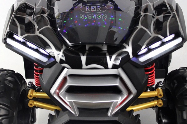 Детский электромобиль Rivertoys Z999VO (ривертойс) - детский квадроцикл для ребенка от 3 до 8 лет с прекрасными ходовыми качествами и оригинальной подсветкой (звездное небо). Для маленьких детей, которые пока не справляются с управлением самостоятельно, есть дистанционный пульт управления.