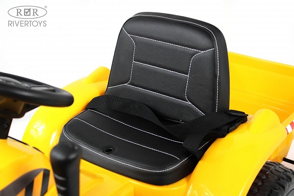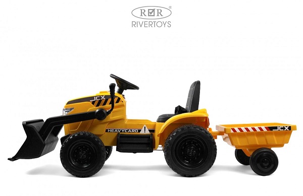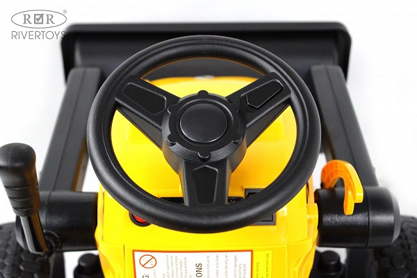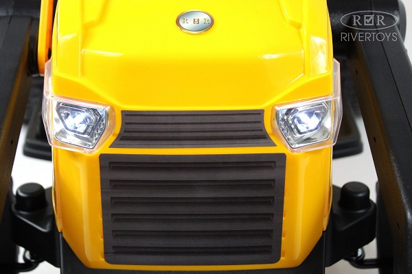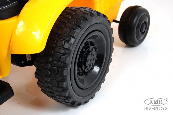 Детский электромобиль трактор-погрузчик Rivertoys T333TT - идеальный подарок для ребенка от 3 лет. Научит ребенка управлять спецтранспортом, работать на нем, проводить весело и интересно время на свежем воздухе. Трактор невероятно функциональный. Это и работающий ковш, и большой прицеп для перевозки грузов и игрушек. Внутри машинки комфортное кожаное сидение, реалистичный руль с заводской музыкой, радио, USB вход для флешки со сказками и любимыми песнями ребенка. Передние фары светятся, позволяя "работать" даже в позднее время. Индикатор заряда батарее позволит заранее продумывать объем работы и маршрут. Большие каучуковые колеса уверенно справятся с неровностями дороги, небольшим бездорожьем.