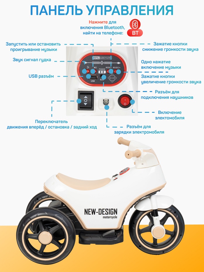 - Трицикл оснащен встроенными музыкальными эффектами для создания атмосферного настроения.