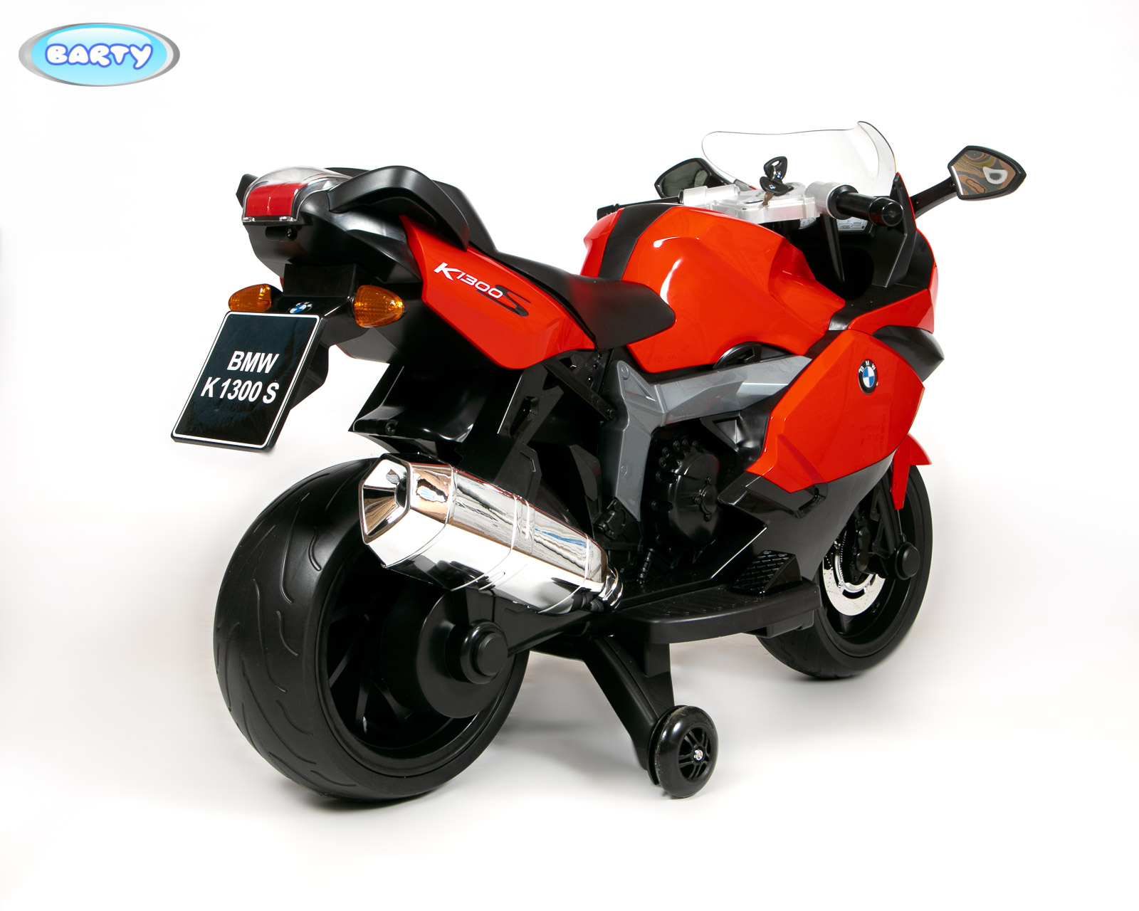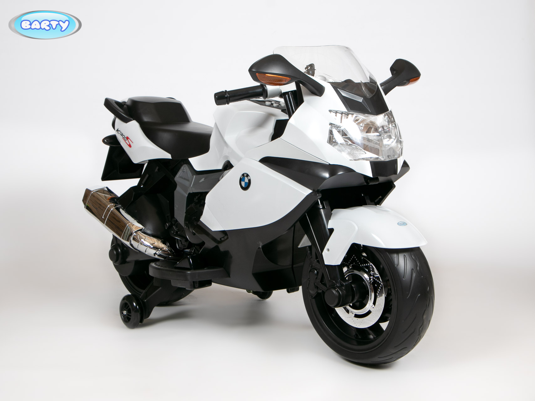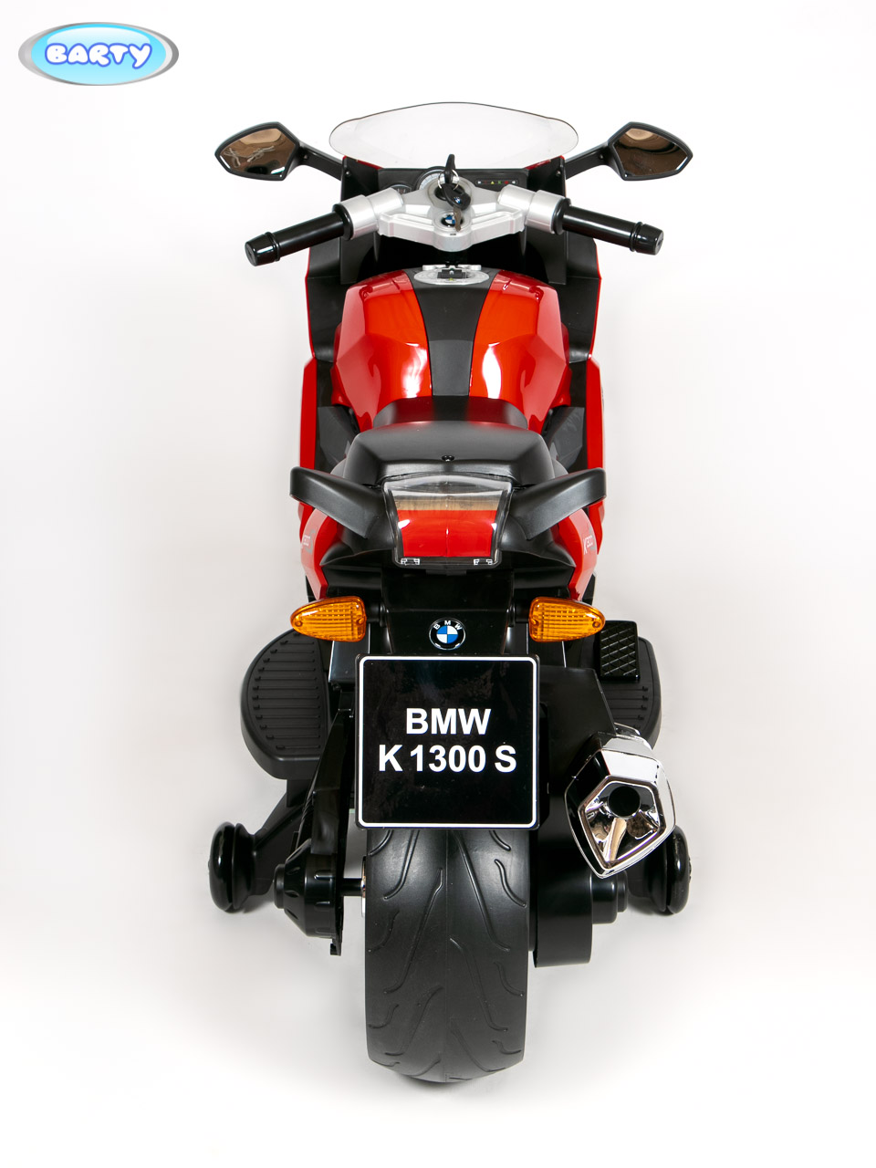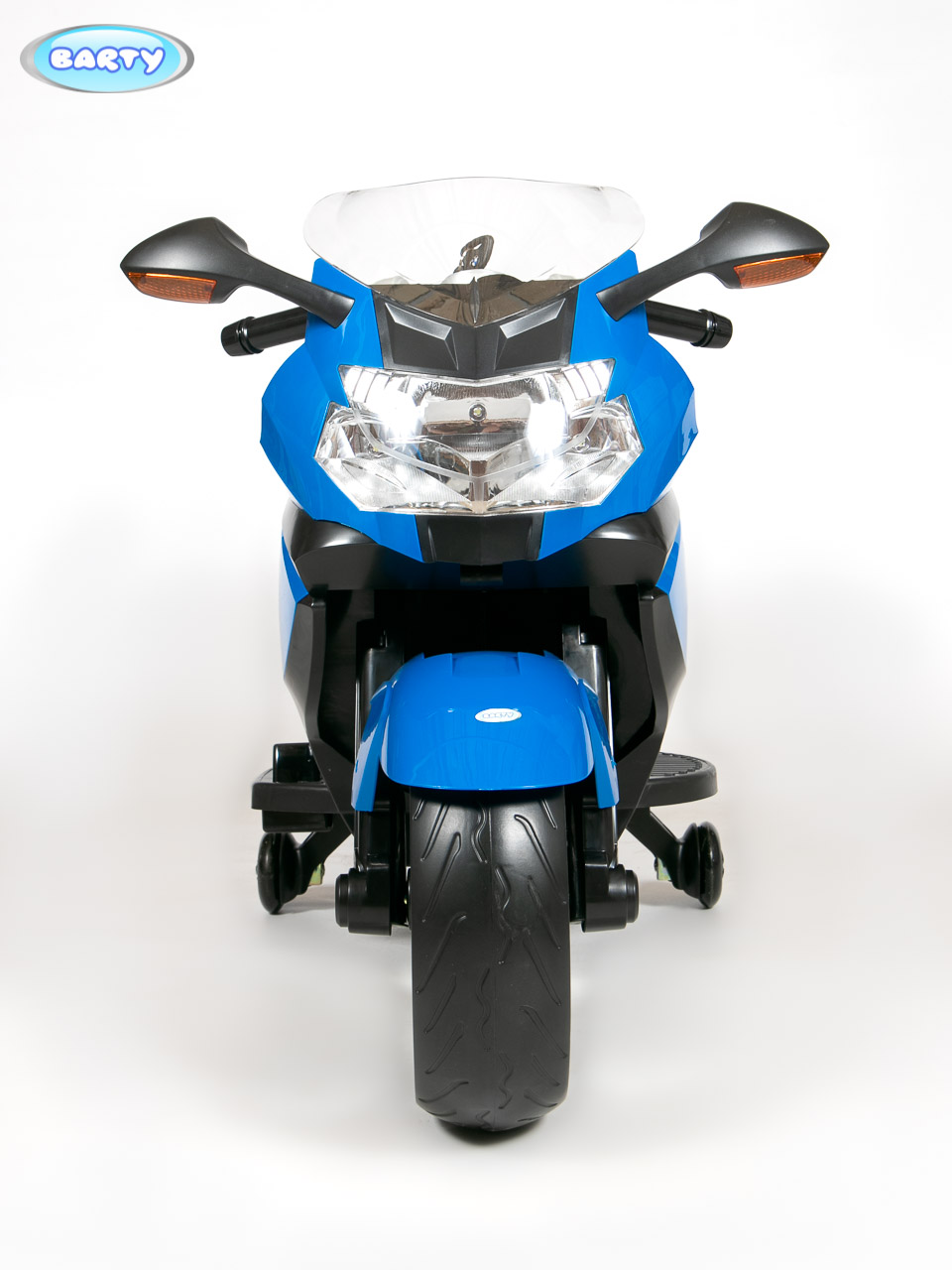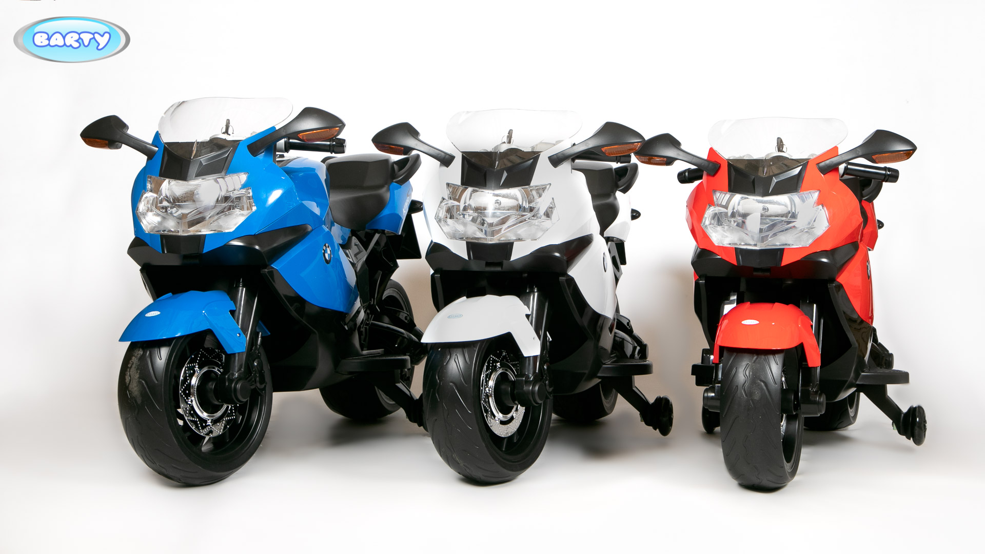 Детский электромотоцикл Barty BMW K1300S Z283 (Барти БМВ) - лицензионный детский мотоцикл для ребенка от 3 до 7 лет. Детский мотоцикл стилизован под настоящий байк BMW. Ребенка ждут увлекательные и интересные поездки на мощном и спортивном мотоцикле с большим ветровым стеклом, хромированной выхлопной трубой и другими элементами как у настоящего байка. Большие каучуковые колеса отлично справляются с неровностями на дороге и имеют дополнительную устойчивость за счет увеличенной ширины колес. Для детей, которые только начинают осваивать поездки на мотоцикле, предусмотрены дополнительные небольшие колеса по бокам. Заводится мотоцикл при помощи ключа, а за ход мотоцикла отвечает кнопка на удобной платформе для ног. Данная кнопка отвечает за газ и тормоз. При нажатии на нее мотоцикл едет, убрать ногу с педали- остановить мотоцикл. Мотоцикл может ездить вперед и назад, при этом скорость набирается плавно, без рывком , что очень важно для безопасности ребенка. Максимальная скорость у модели 7 км/час а батареи хватит на примерно 120 минут .