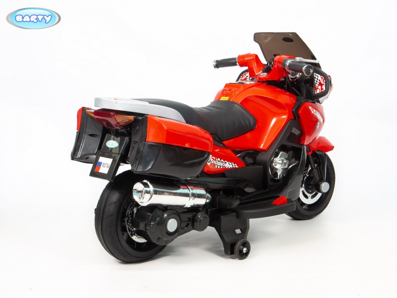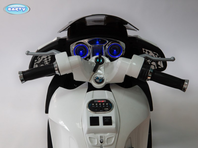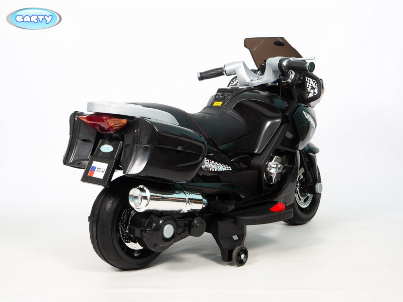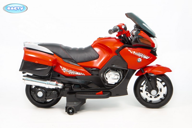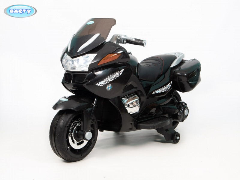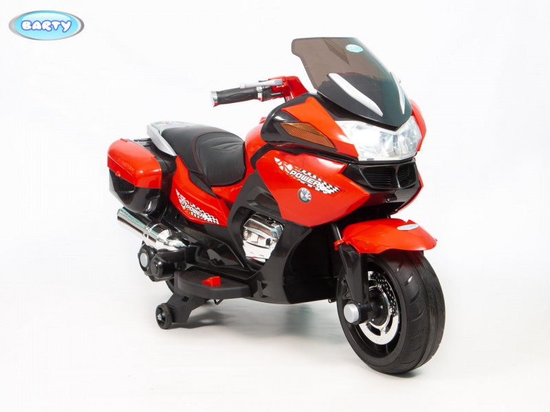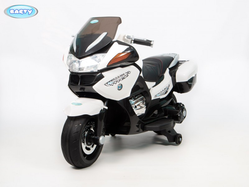 Детский электромотоцикл BARTY BMW R1200RT M007AA (HZB118) (Барти БМВ) - готовы подарить своему ребенку настоящий мотоцикл?! Стильный, крутой и безопасный электромотоцикл для ребенка от 3 до 7 лет. Главной особенностью этой модели является высокая скорость транспорта 7 км/час которая позволит ребенку действительно получить удовольствие от поездки. Для начинающих гонщиков предусмотрены дополнительные колеса для устойчивости, а когда ребенок полностью разберется с новым транспортом их легко снять. Модель R 1200 М007АА очень интересна управлением поворотной ручкой газа на руле, благодаря которой вы можете еще более точно дозировать мощность двигателя . Полная имитация настоящего мотоцикла в управлении. По бокам расположены кофры для игрушек, для удобства юного байкера. Колеса Ева, низкопрофельные обеспечивают надежное сцепление с дорогой.