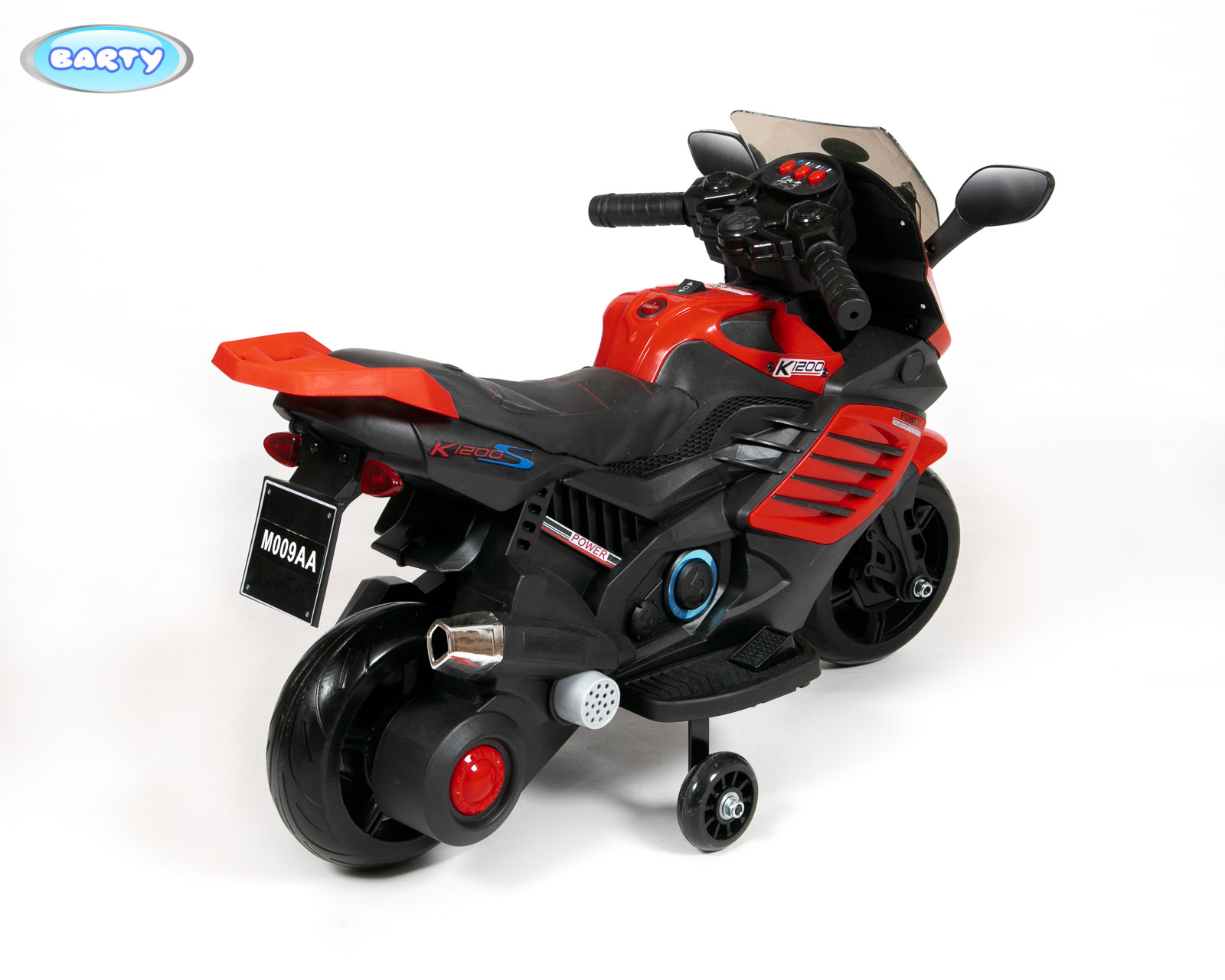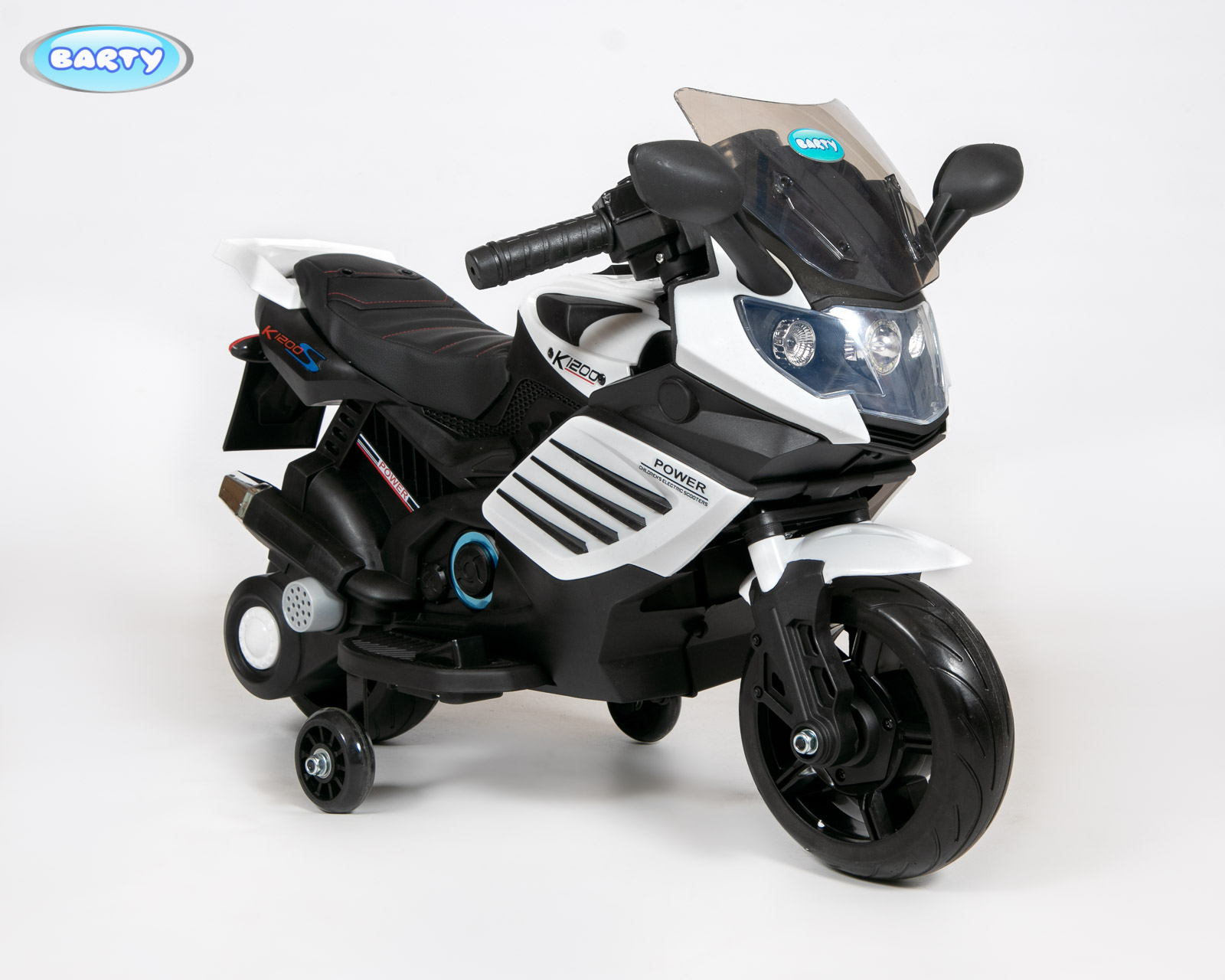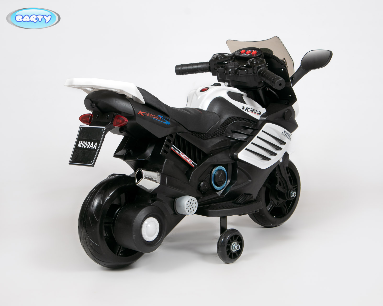 Детский электромотоцикл BARTY M009AA (барти м009аа) - мотоцикл для детей от 3 до 6 лет станет прекрасным подарком на любой праздник. Благодаря глянцевой поверхности, которая переливается на солнце, мотоцикл привлечет внимание всех детей в парке или на игровой площадке. Внешняя красота – не единственное достоинство мотобайка. Данная модель оснащена одним двигателем 20 W и аккумулятором 6V4,5 Ah. Родители могут не переживаться за безопасность ребенка, байк плавно трогается с места и может разогнаться до 3 км/ч. У мотобайка по бокам есть страховочные колеса. Так ребенок сможет научиться держать «железного коня» в равновесии. Глубокий протектор, резиновые колеса EVA, задний привод – такими характеристиками может похвастаться разве что байк папы .Юный водитель сможет кататься на мотобайке не только по асфальту, но и парковой зоне. Данная модель заводится с кнопки. Во время прогулки в темное время суток ребенок сможет осветить путь фарами.
