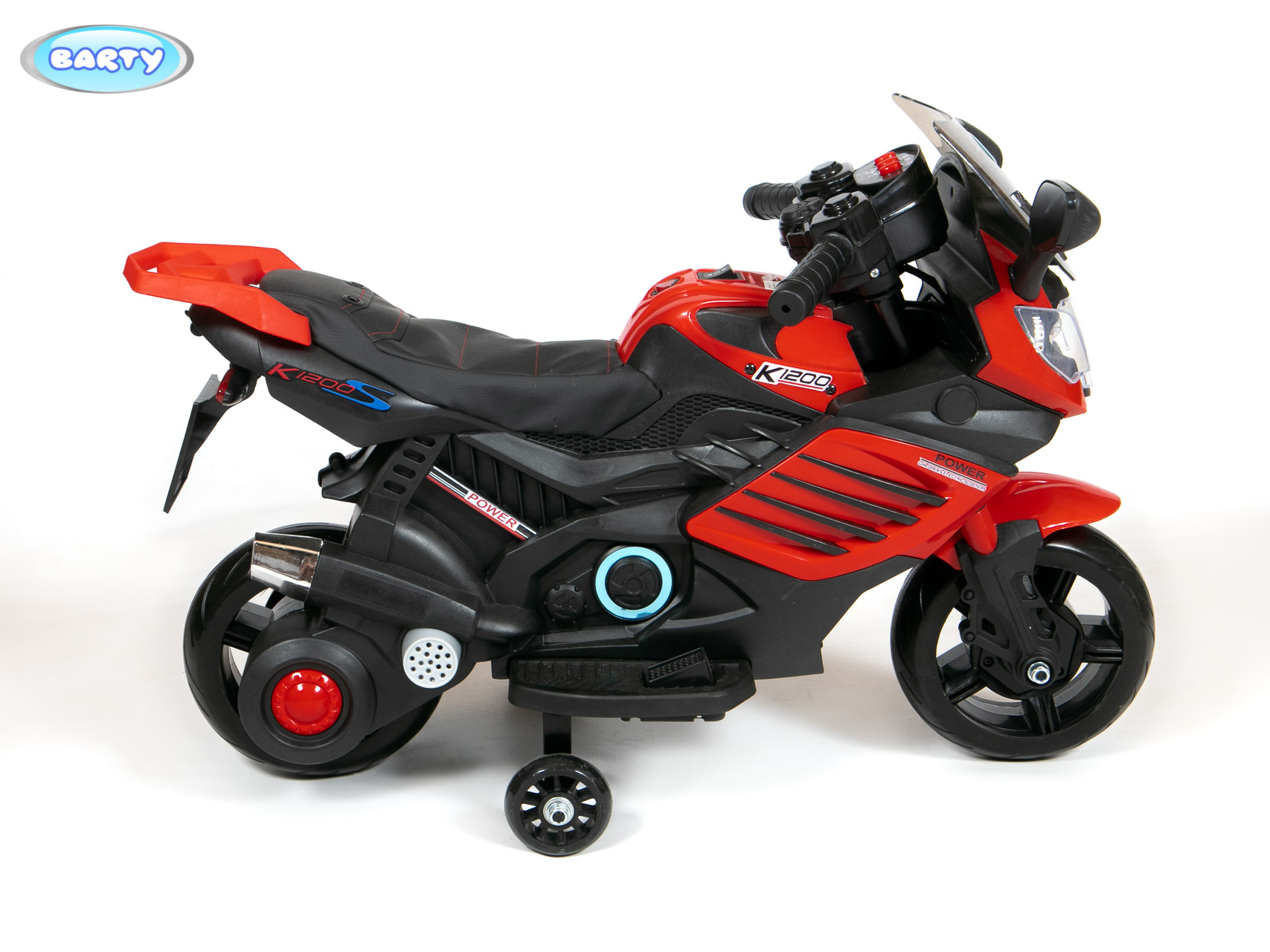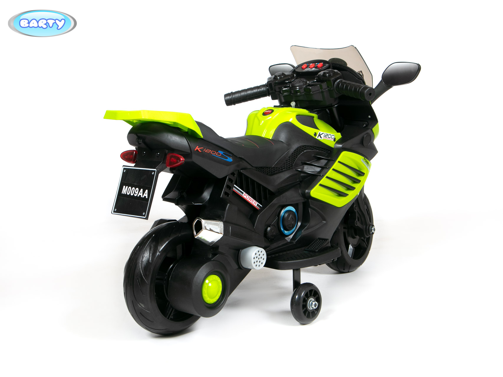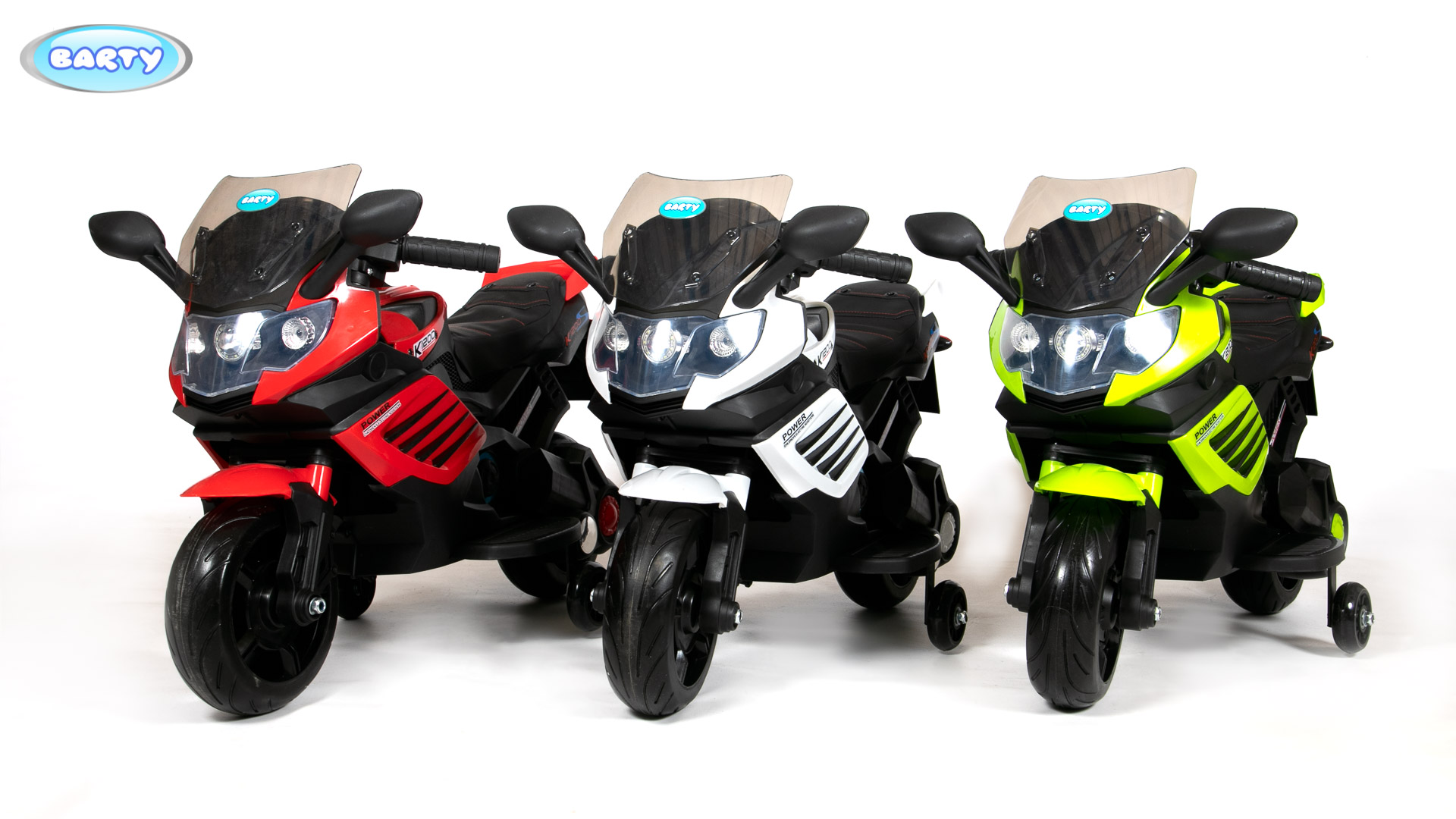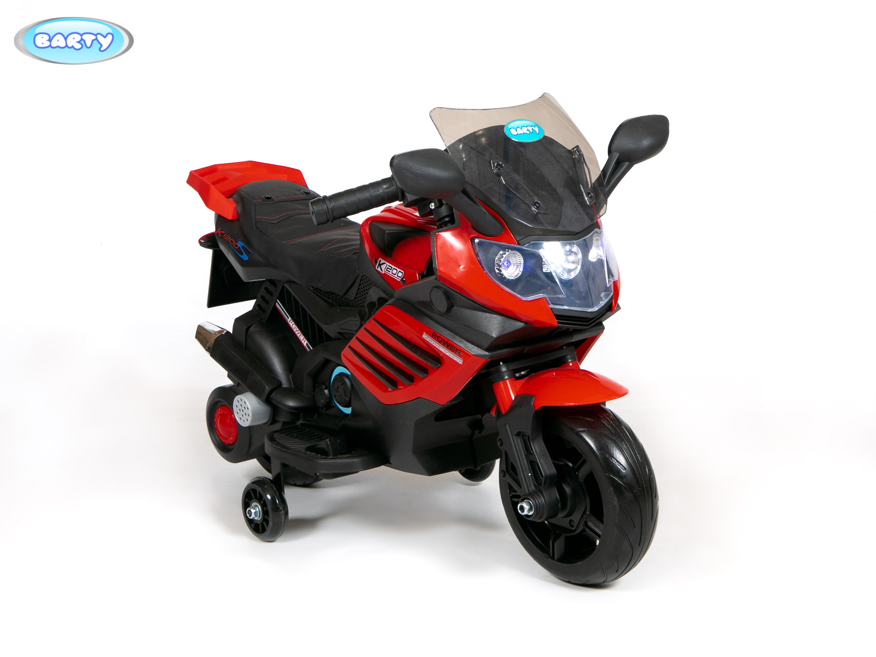 Детский электромотоцикл BARTY M009AA (барти м009аа) - мотоцикл для детей от 3 до 6 лет станет прекрасным подарком на любой праздник. Благодаря глянцевой поверхности, которая переливается на солнце, мотоцикл привлечет внимание всех детей в парке или на игровой площадке. Внешняя красота – не единственное достоинство мотобайка. Данная модель оснащена одним двигателем 20 W и аккумулятором 6V4,5 Ah. Родители могут не переживаться за безопасность ребенка, байк плавно трогается с места и может разогнаться до 3 км/ч. У мотобайка по бокам есть страховочные колеса. Так ребенок сможет научиться держать «железного коня» в равновесии. Глубокий протектор, резиновые колеса EVA, задний привод – такими характеристиками может похвастаться разве что байк папы .Юный водитель сможет кататься на мотобайке не только по асфальту, но и парковой зоне. Данная модель заводится с кнопки. Во время прогулки в темное время суток ребенок сможет осветить путь фарами.