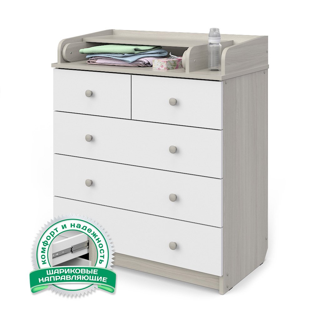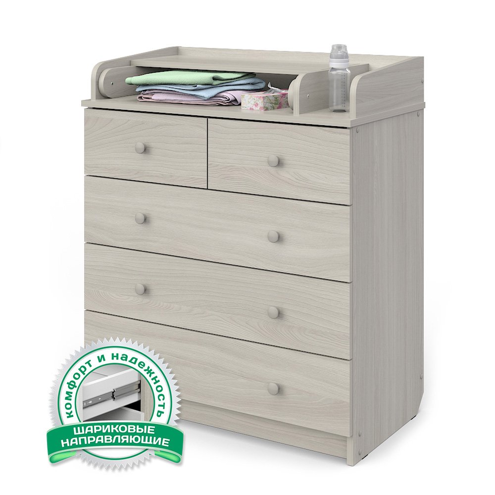 Детский комод Атон СИРИУС-2 805 ЛДСП - Удобный пеленальный комод с отделением для средств по уходу за малышом. Все необходимое будет всегда под рукой. Ящики комода оснащены шариковыми направляющими полного выдвижения, которые обладают плавностью хода и бесшумностью, а также увеличенным ресурсом пользования.