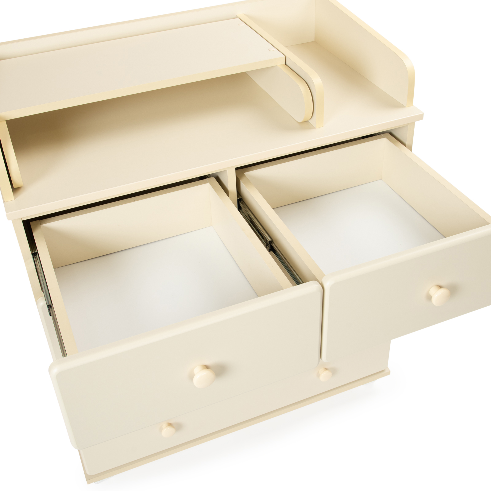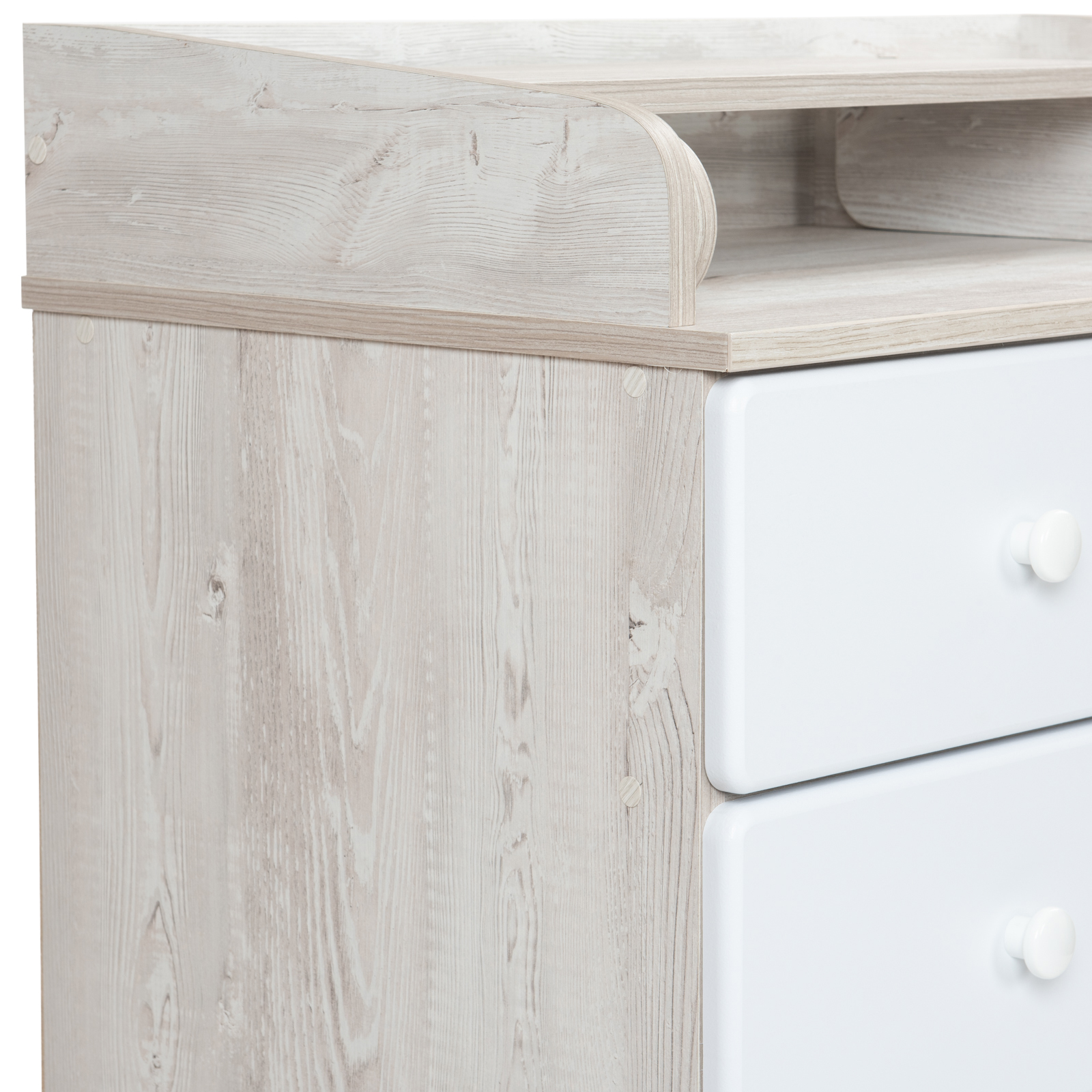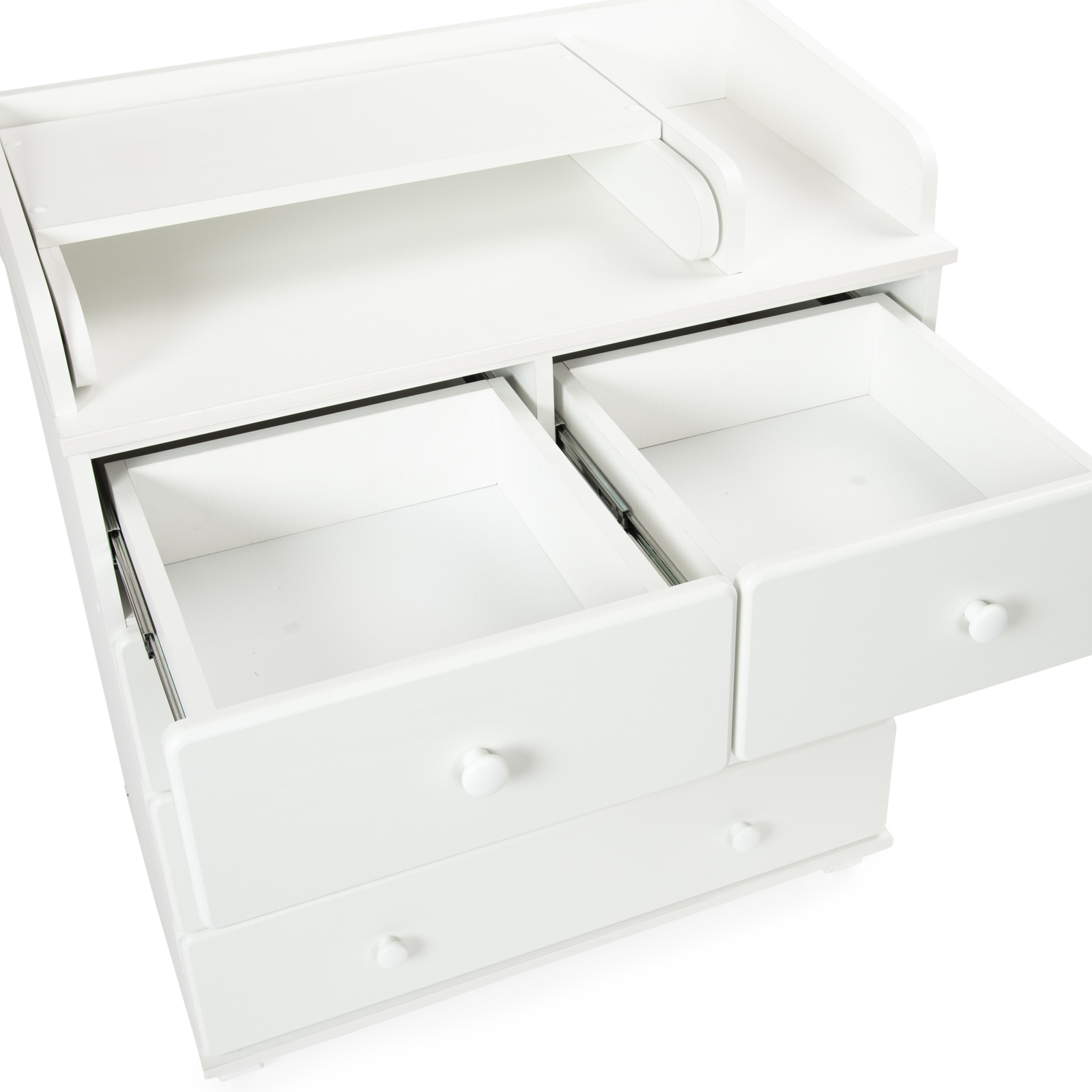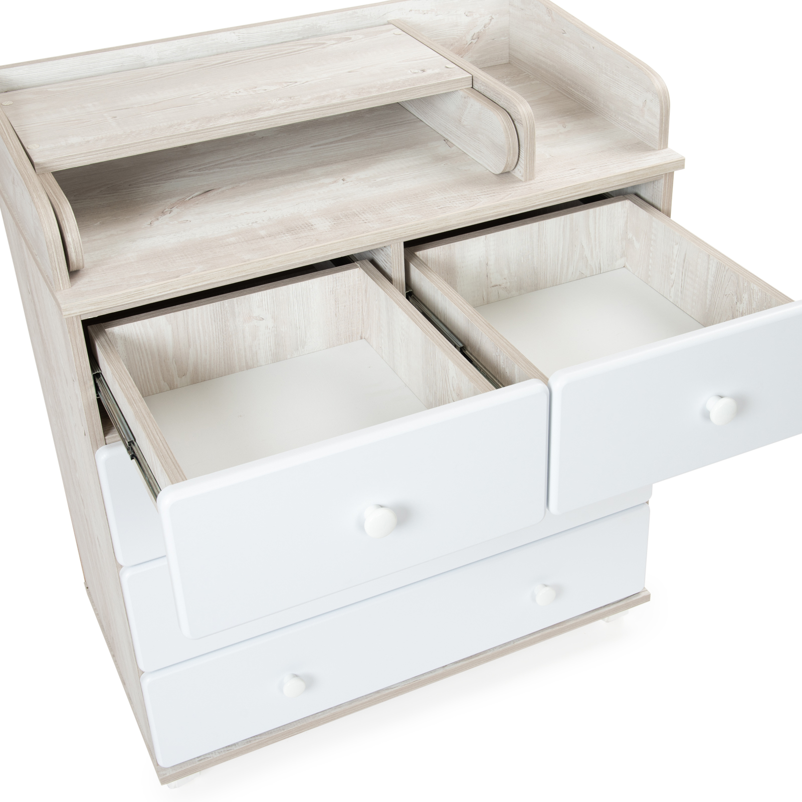 Это незаменимый предмет в доме, выступающий не только в роли шкафа для детских вещей, но и как пеленальный столик и место для переодевания ребёнка.