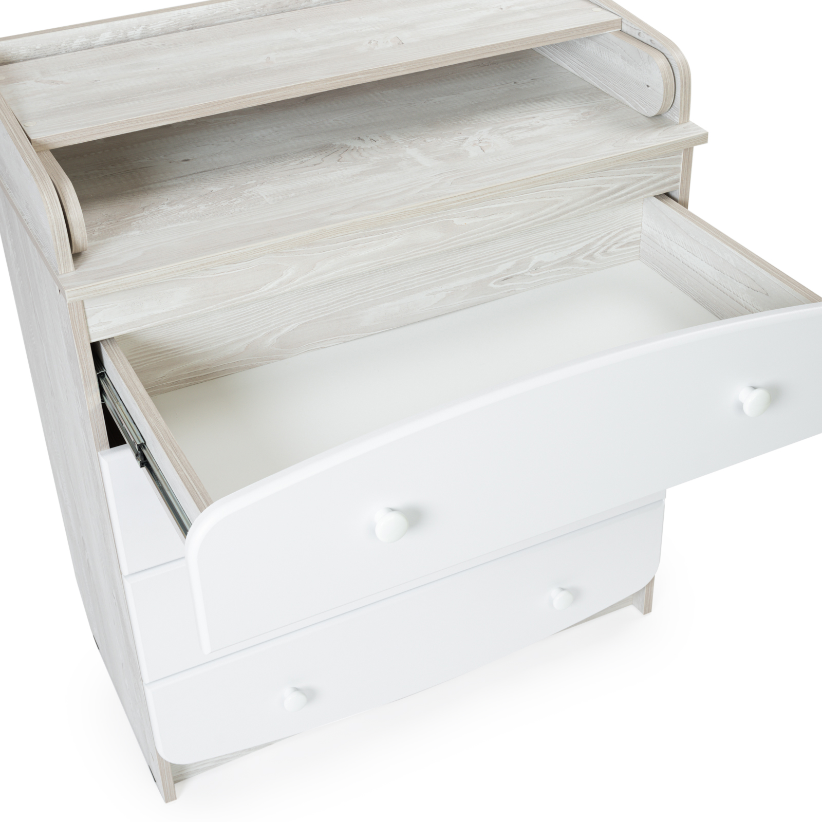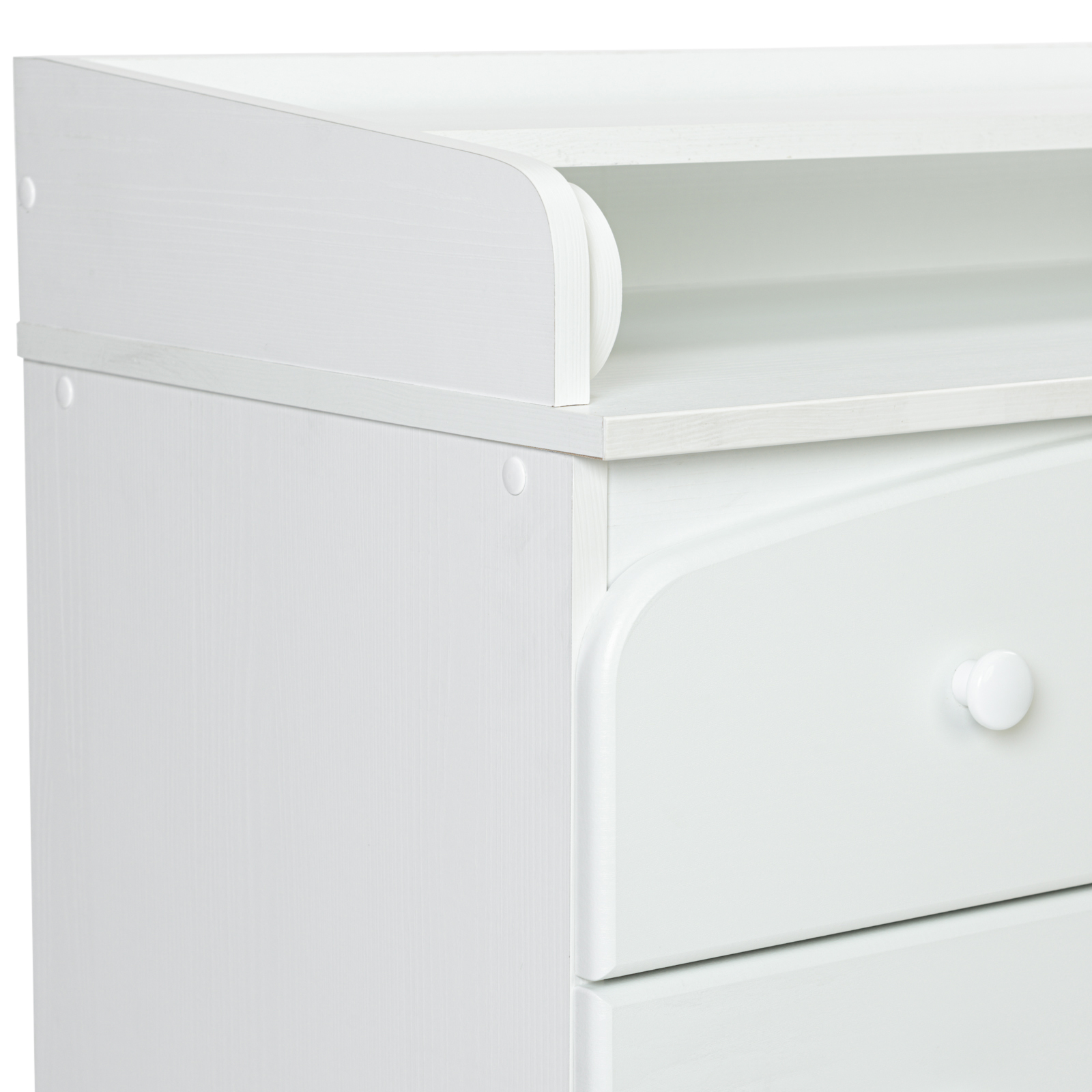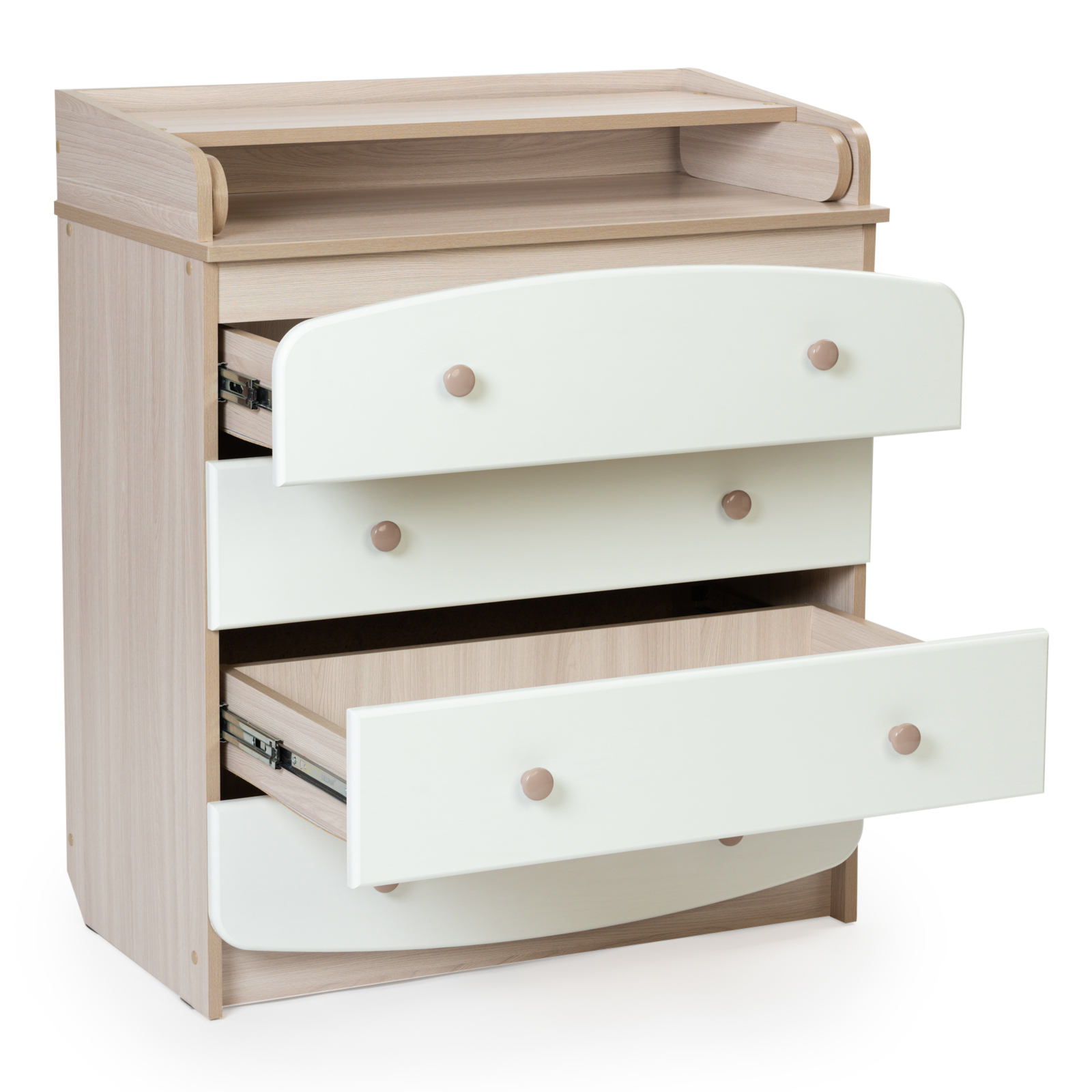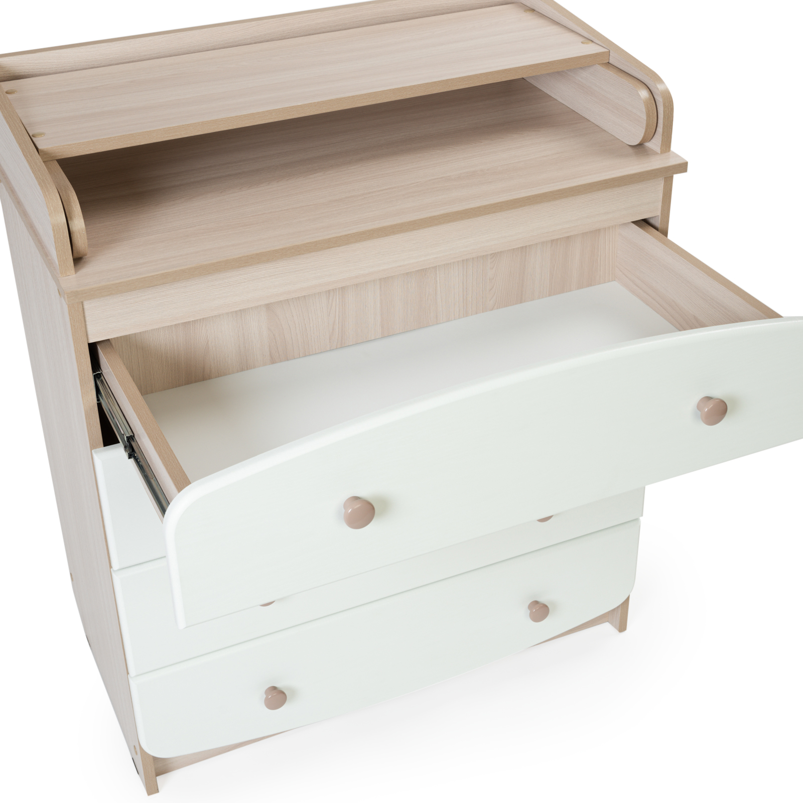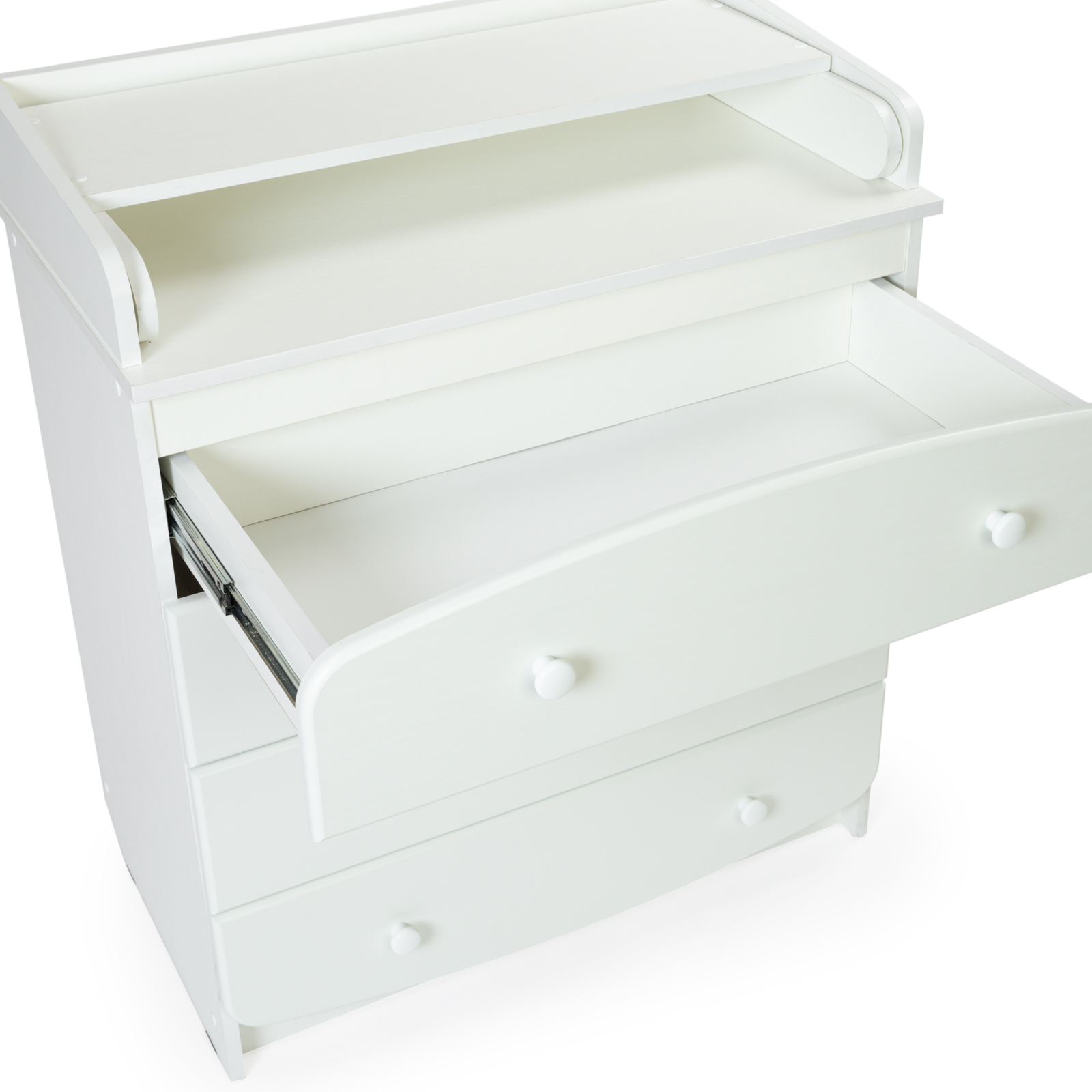 Детский комод BEBIZARO ROOMY (Бебизаро Руми) - незаменимый предмет в любом доме, где есть ребенок. 4 вместительных ящика помогут организовать порядок в детских вещах, хранить все "под рукой". Большой пеленальный столик поможет одевать и переодевать ребенка, проводить все необходимые гигиенические процедуры на удобной для вас высоте. Когда столик не нужен, он превращается в 2 дополнительные полочки для нужных вещей. Элегантный дизайн, большой выбор расцветок и фактур помогут подобрать идеальный комод в детскую комнату.